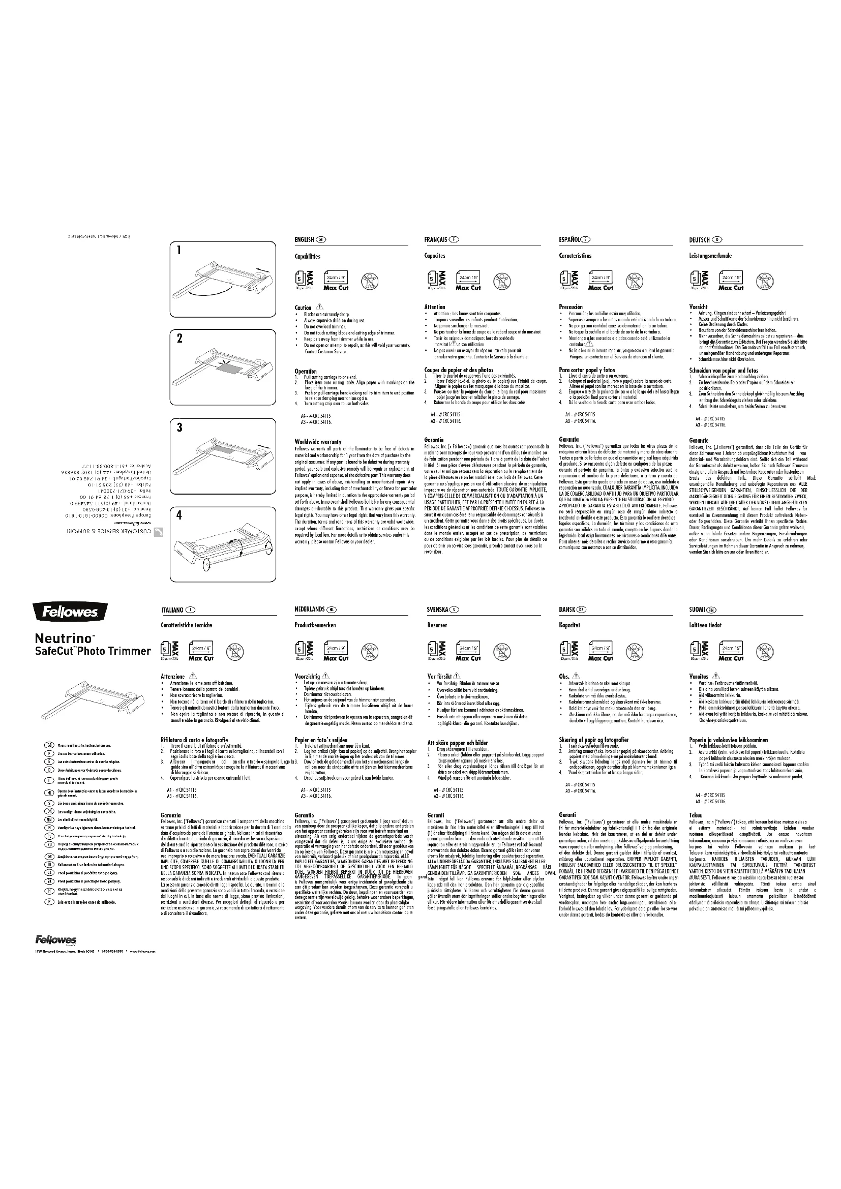 Neutrino A5 - Coupe-papier FELLOWES - Notice d'utilisation et mode d'emploi gratuit
