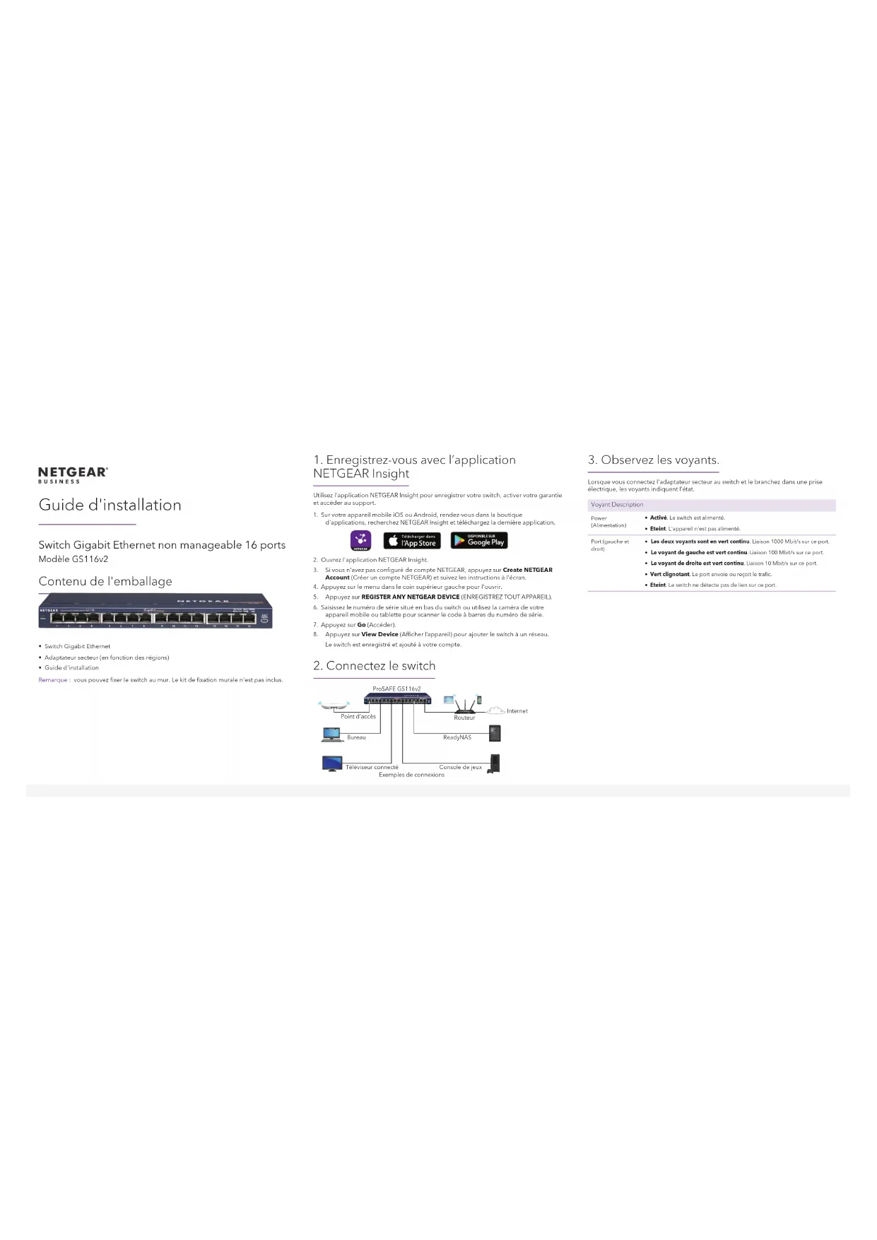 InternetRouteurReadyNASExemples de connexionsProSAFE GS116v2BureauTéléviseur connectéPoint d'accèsConsole de jeuxNETGEAR, Inc. 350 East Plumeria Drive San Jose, CA 95134, Etats-Unis