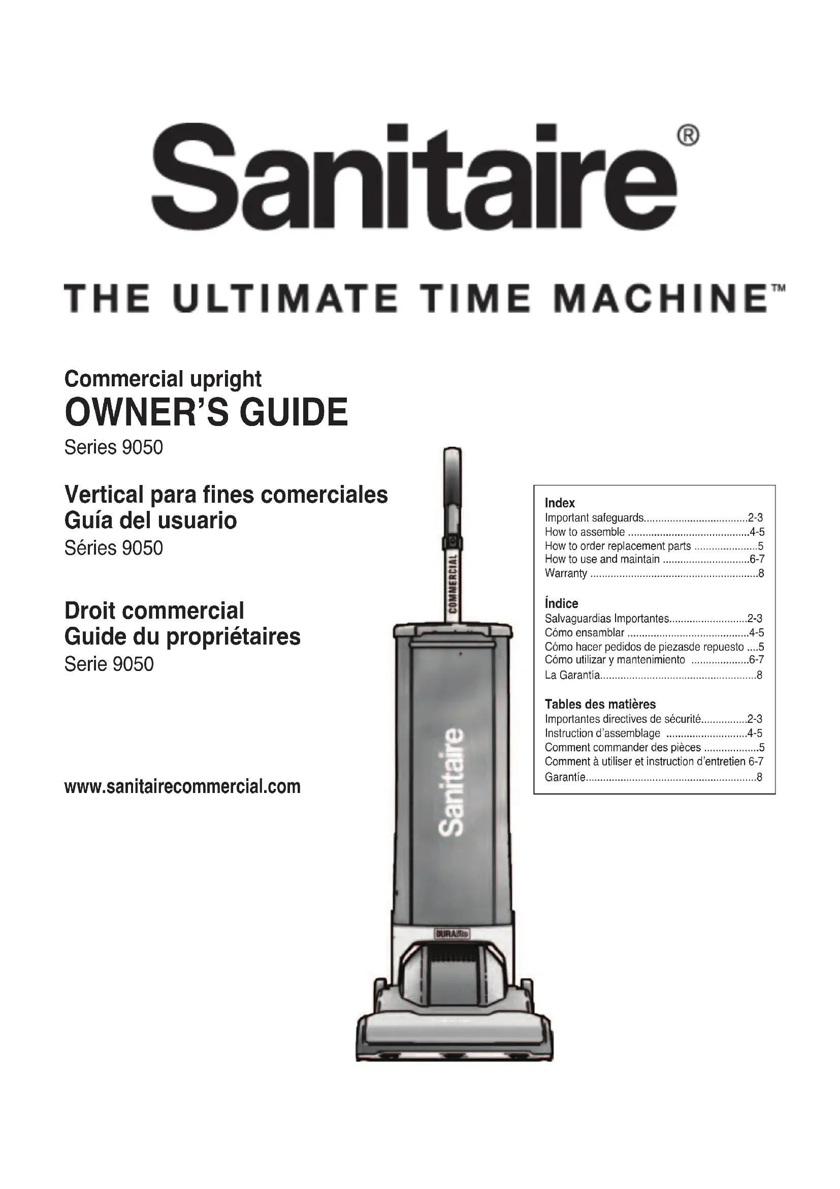 UN AN À PARTIR DE LA DATE D’ACHAT CONFORMÉMENT À CE QUI EST DÉCRIT PRÉCÉDEMMENT. Certains États ou provinces n’acceptent pas les limitations sur la durée des garanties implicites, par conséquent, la présente limitation peut ne pas s’appliquer à vous. REMARQUE : Conservez le reçu de votre achat. Celui-ci permet de déterminer la date d’achat en cas de réclamation en vertu de la garantie. Si votre produit Sanitaire doit être réparé Vous trouverez le Centre de service agréé de Sanitaire de votre région en ligne sur le site sanitairecommercial.com en utilisant le service localisateur ou en contactant le service à la clientèle de Sanitaire. Contactez le service à la clientèle de Sanitaire si vous avez besoin d’information à propos des réparations ou des pièces de rechange ou si vous avez des questions à propos de votre garantie. Site Web : www.sanitairecommercial.com Numéro de téléphone : Service à la clientèle de Sanitaire 1-800-800-8975 Lundi au vendredi 9 h à 20 h 30 heure de l’Est Garantie limitée commerciale des produits Sanitaire