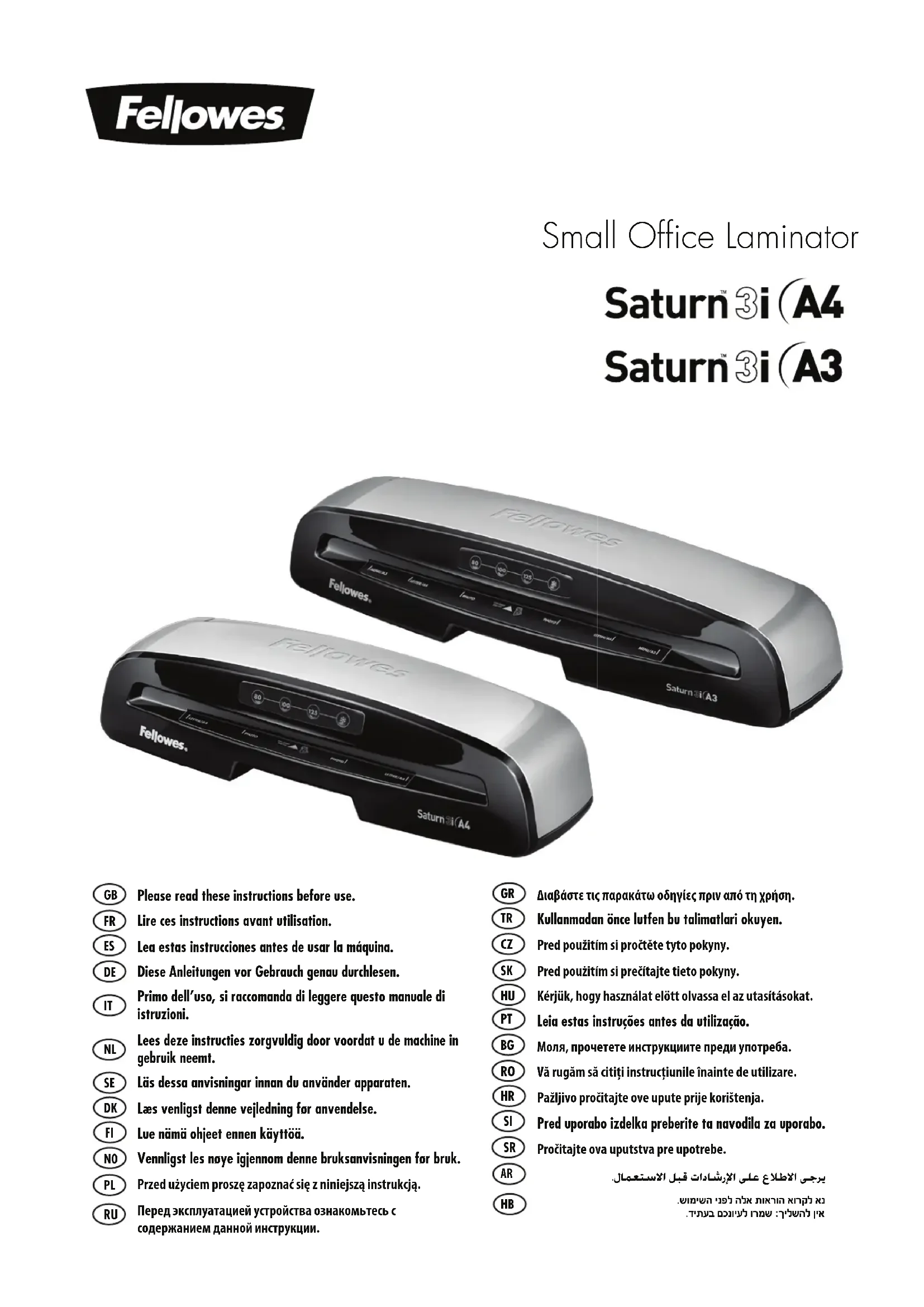 Saturn 3i A4 - Machine à laminer FELLOWES - Notice d'utilisation et mode d'emploi gratuit