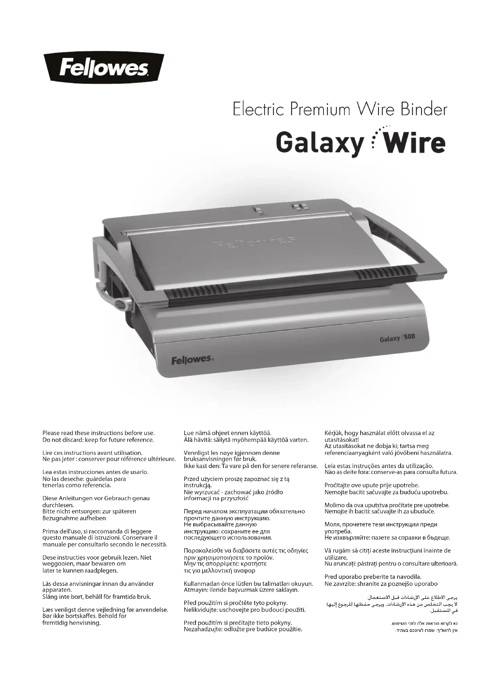 Retrouvez gratuitement la notice de l'appareil Encuadernadora Galaxy Wire FELLOWES au format PDF.