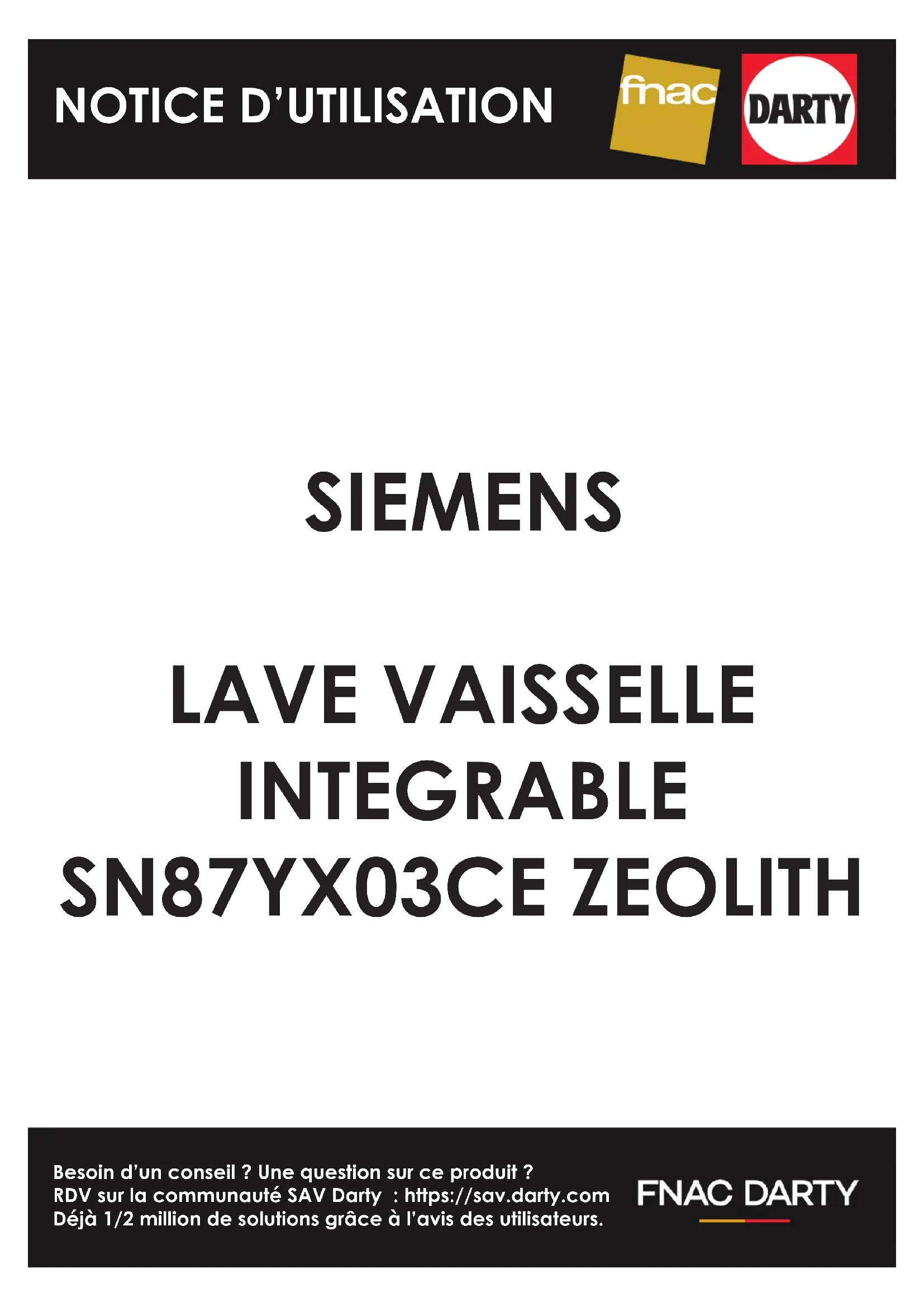 Besoin d’un conseil ? Une question sur ce produit ? RDV sur la communauté SAV Darty : https://sav.darty.com Déjà 1/2 million de solutions grâce à l’avis des utilisateurs. SIEMENS LAVE VAISSELLE INTEGRABLE