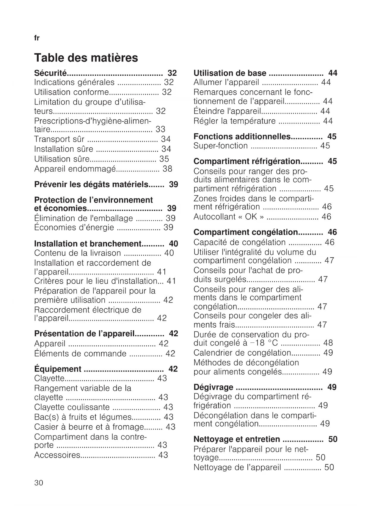 - Dégivrage p. 49