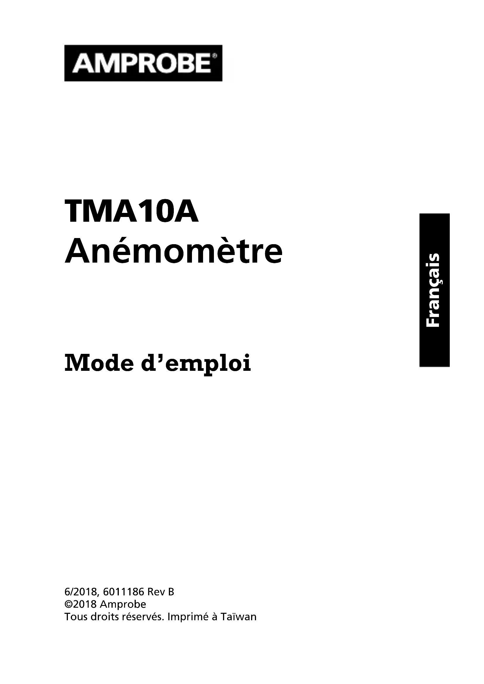 TMA10A - Anémomètre Amprobe - Notice d'utilisation et mode d'emploi gratuit