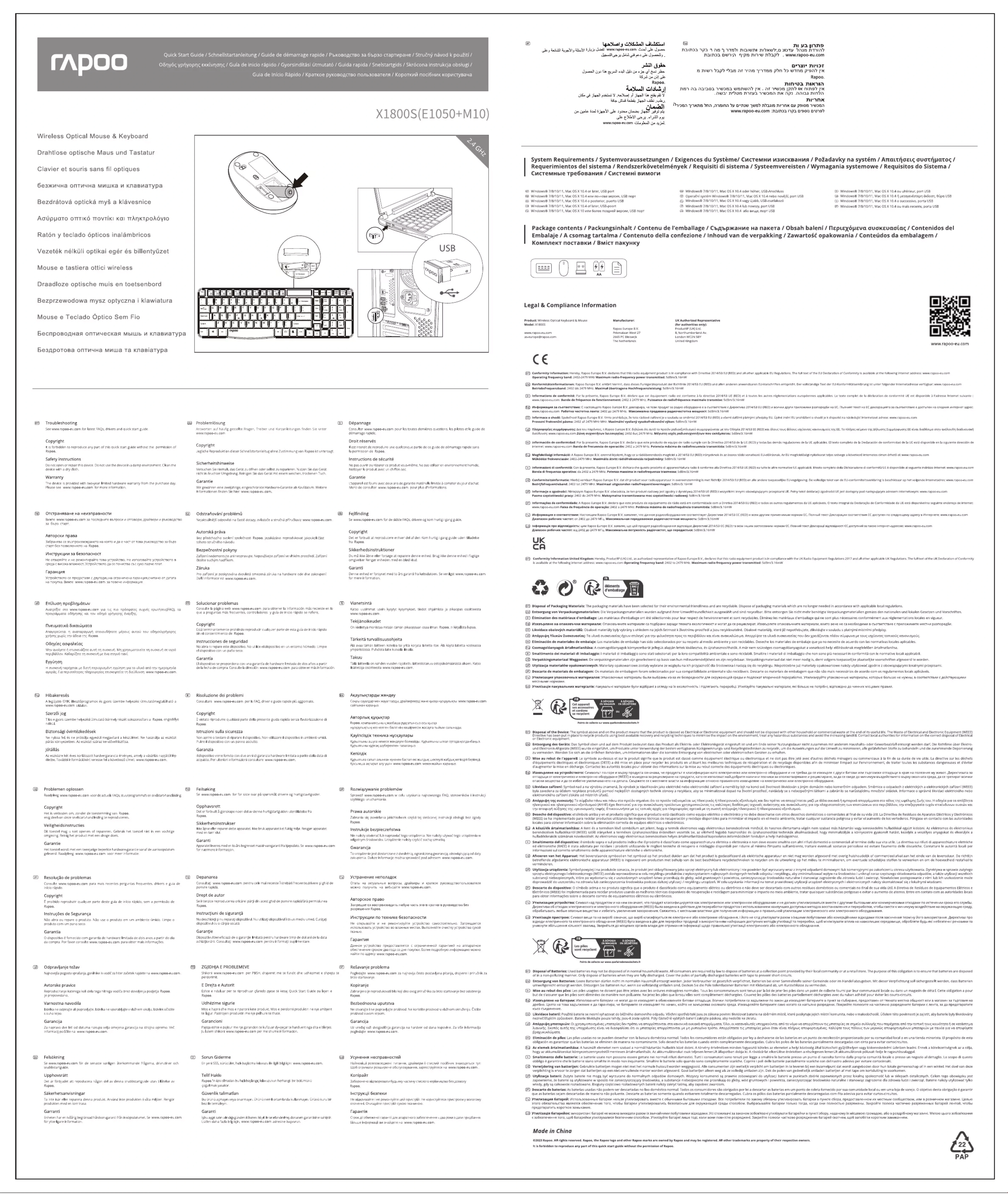 X1800S - Clavier RAPOO - Notice d'utilisation et mode d'emploi gratuit