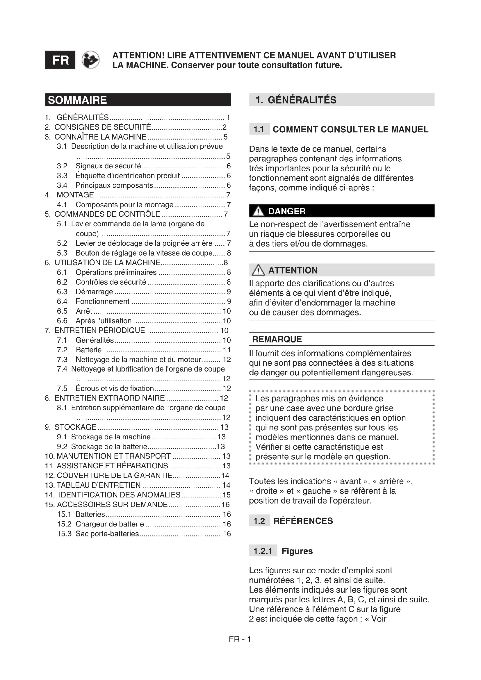 15.3 Sac porte-batteries ....................................... 16FR - 2