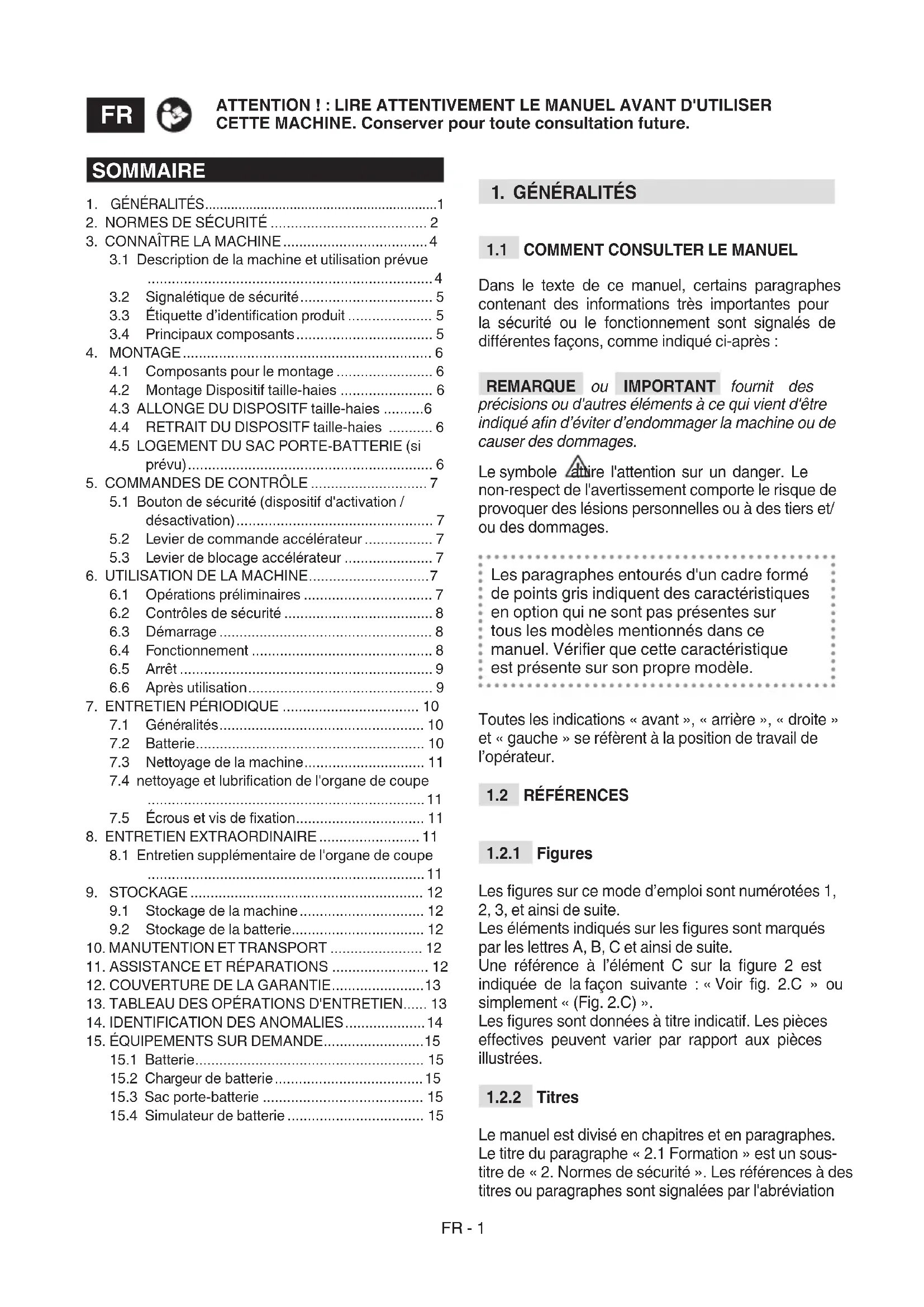15.3 Sac porte-batterie ........................................ 15