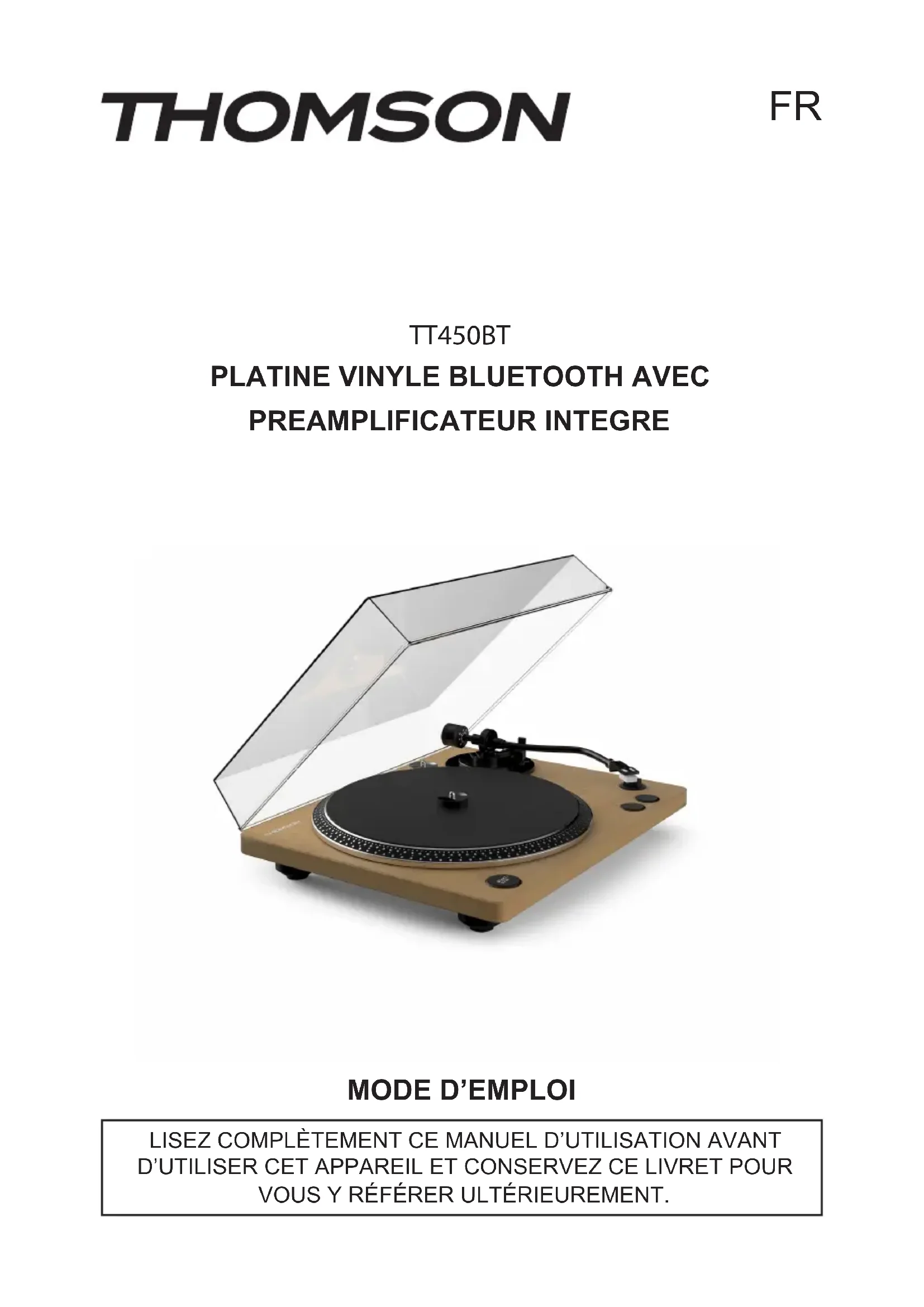 MODE D'EMPLOI TT450BT THOMSON