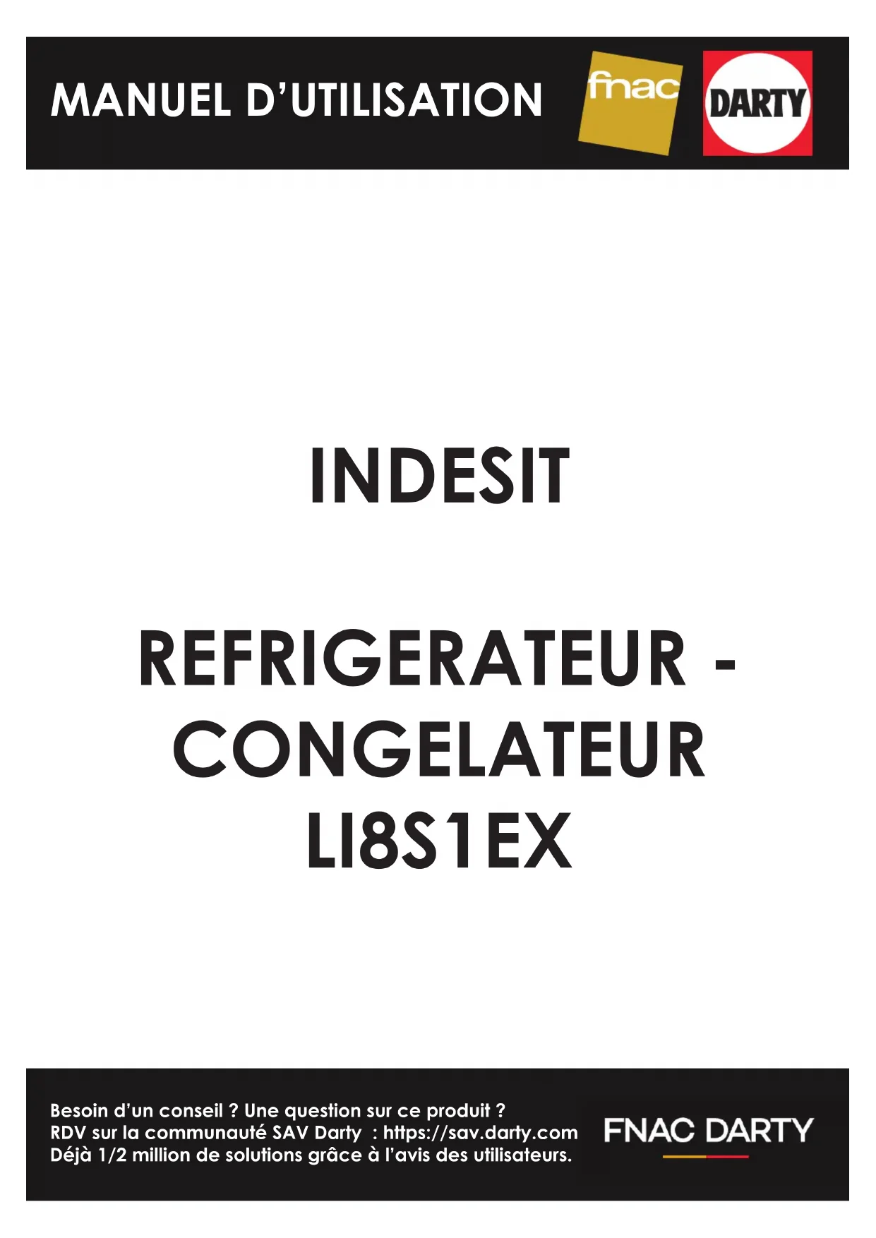 Besoin d’un conseil ? Une question sur ce produit ? RDV sur la communauté SAV Darty : https://sav.darty.com Déjà 1/2 million de solutions grâce à l’avis des utilisateurs. INDESIT REFRIGERATEUR - CONGELATEUR LI8S1EX