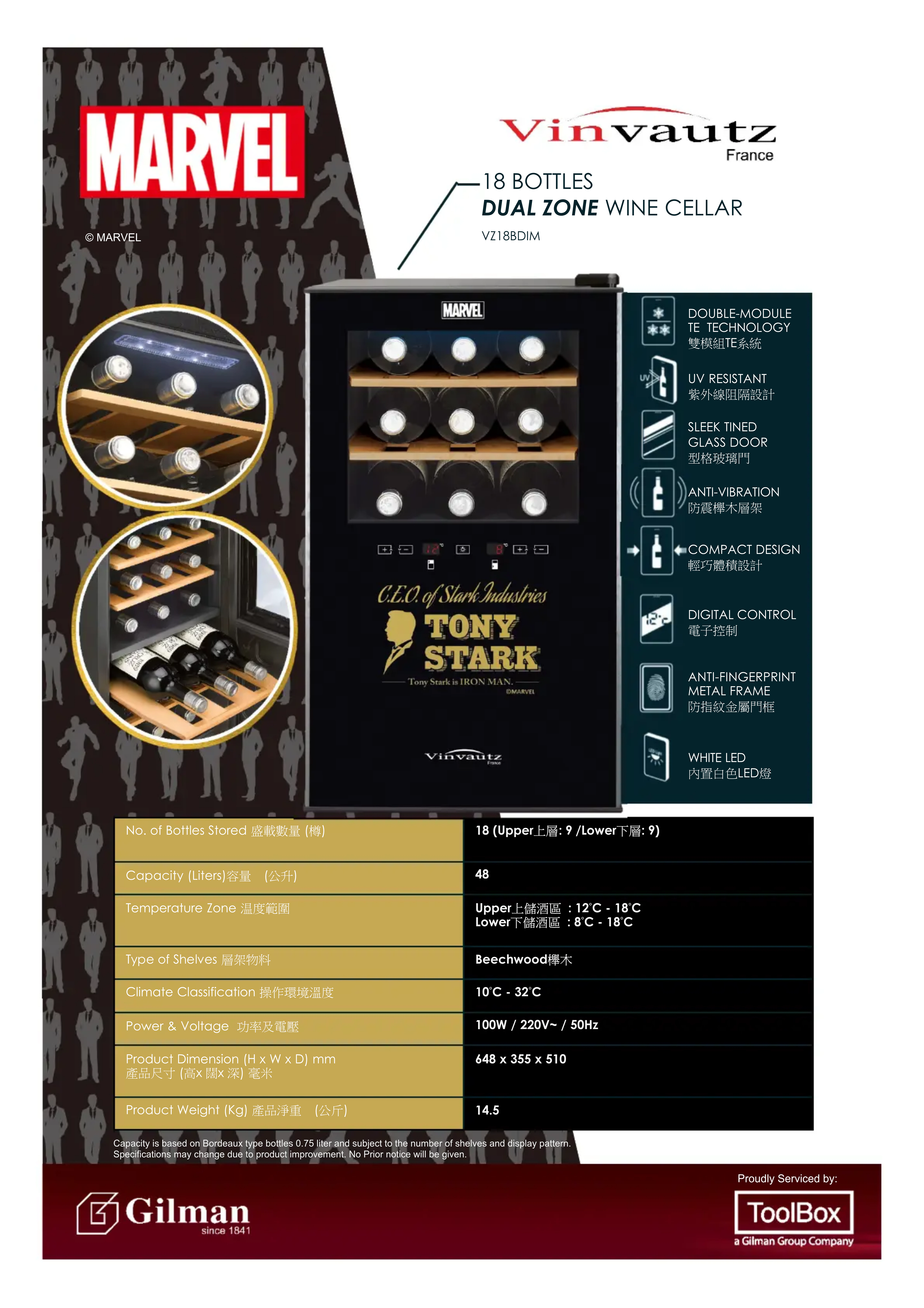 Retrouvez gratuitement la notice de l'appareil VZ18BDIM Vinvautz au format PDF.