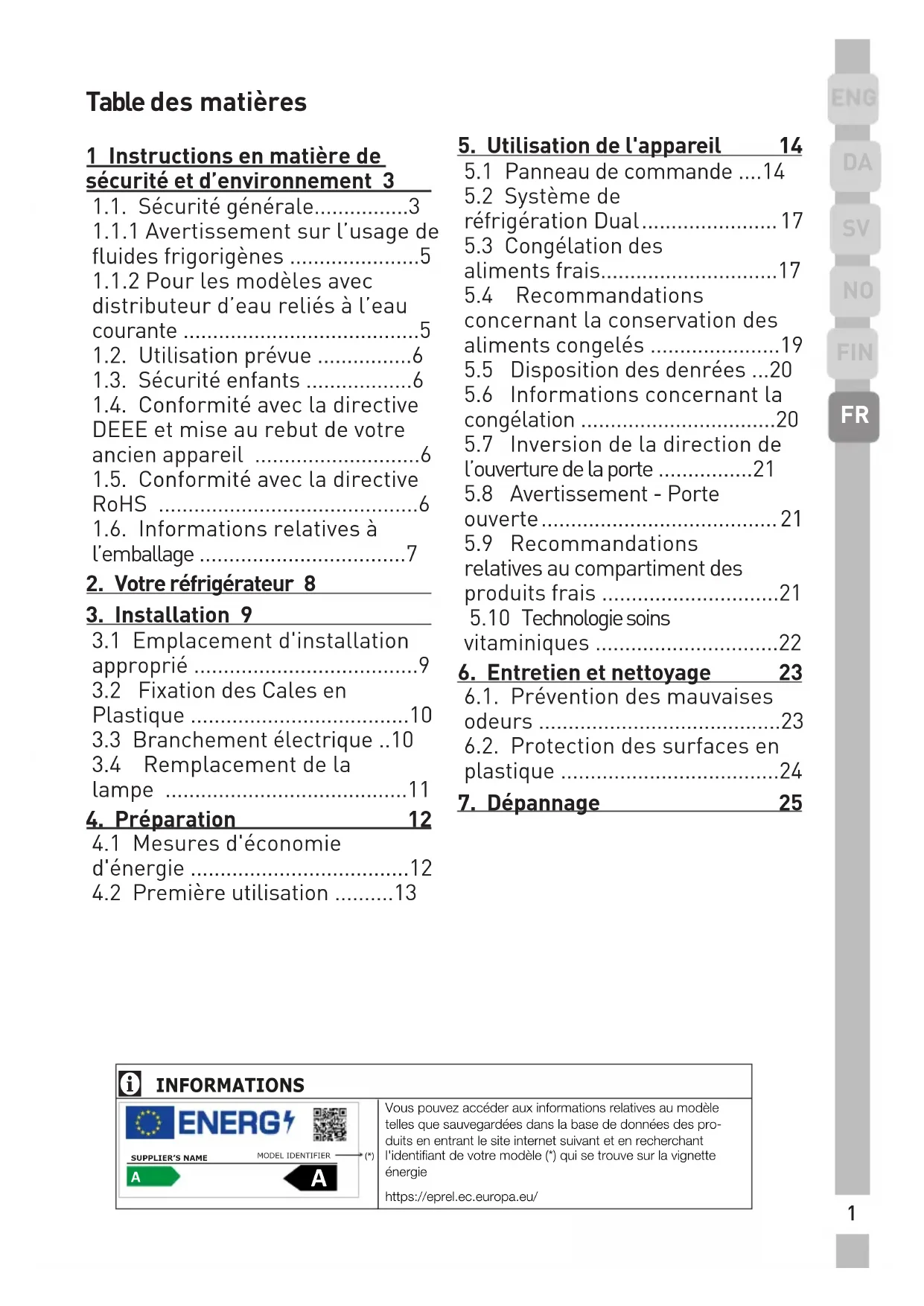 réfrigération Dual .......................17