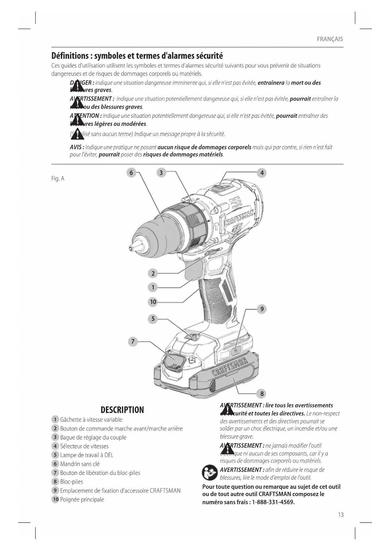 blessures, lire le mode d’emploi del’outil. Pour toute question ou remarque au sujet de cet outil ou de tout autre outil CRAFTSMAN composez le numéro sans frais : 1-888-331-4569.