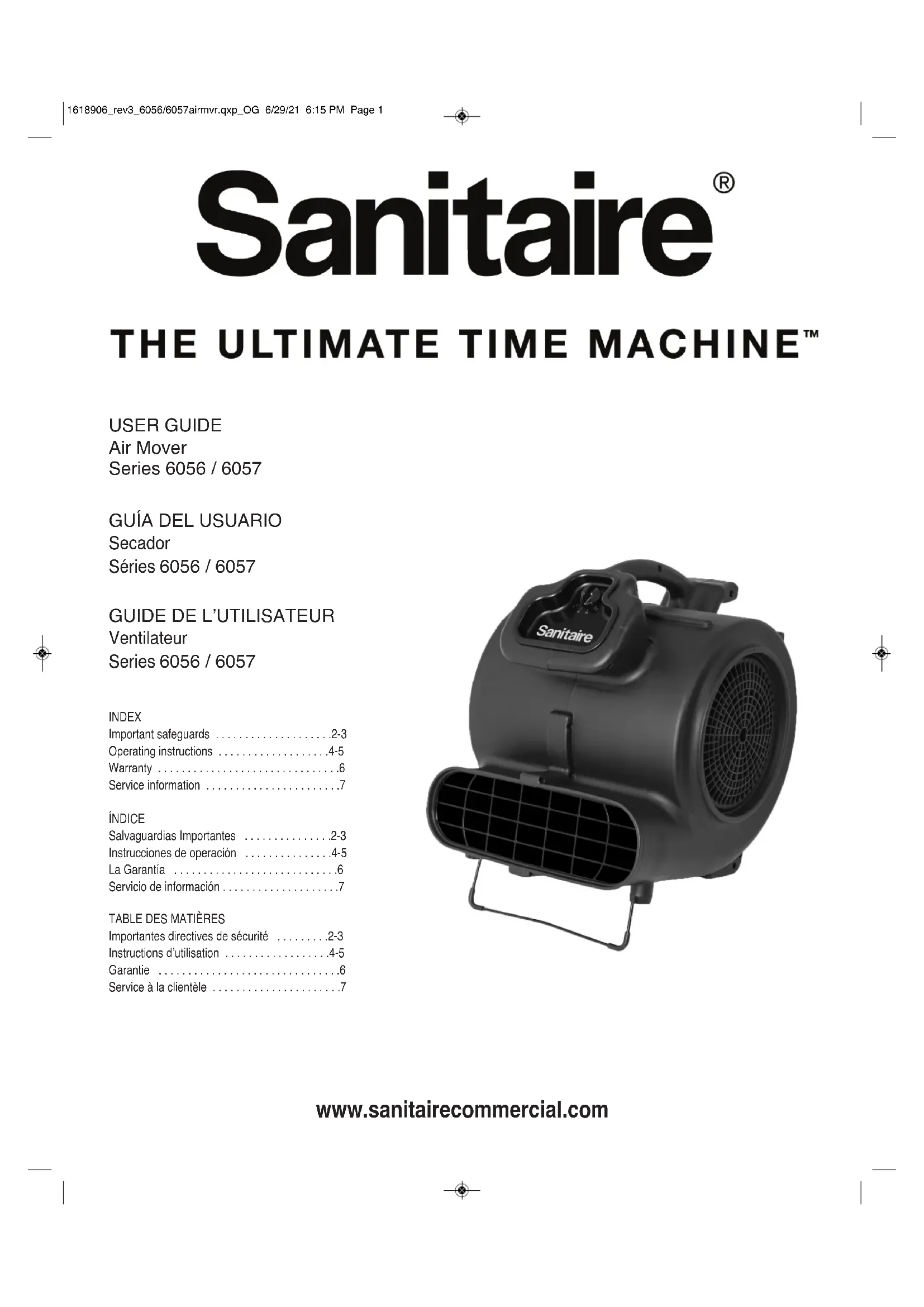 CETTE GARANTIE EST EXCLUSIVE ETREMPLACE TOUTE AUTRE GARANTIE,VERBALE OU ÉCRITE. TOUTES LESGARANTIES IMPLICITES POUVANTRÉSULTER DE L’APPLICATION D’UNE LOI, Y COMPRIS LES GARANTIES IMPLICITESDE QUALITÉ MARCHANDE ET DE CONVENANCE À UN USAGEPARTICULIER, SONT LIMITÉES À LA DURÉE UN ANS À COMPTER DE LA DATE D’ACHAT, TEL QUE STIPULÉ CI-DESS.Certains États ou certaines provinces nepermettant pas de limiter la durée des garantiesimplicites, il se peut donc que les limitationsindiquées ci-dessus ne s’appliquent pas à votresituation. REMARQUE : Veuillez conserver votre reçu de vente originale. Il servira de preuve de la date d’achat si vous devez faire une réclamation au titre de la garantie. 1618906_rev3_6056/6057airmvr.qxp_OG 6/29/21 6:15 PM Page 6www.sanitairecommercial.com 7 ENGLISH SERVICE INFORMATION If your Sanitaire product should require service You will find the nearest Sanitaire Authorized Service Center in your area online at sanitairecommercial.com under service locator