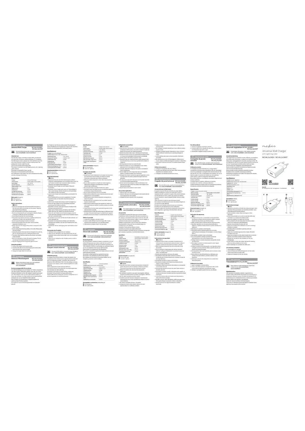WCHAL242ABK - Chargeur téléphone portable NEDIS - Notice d'utilisation et mode d'emploi gratuit