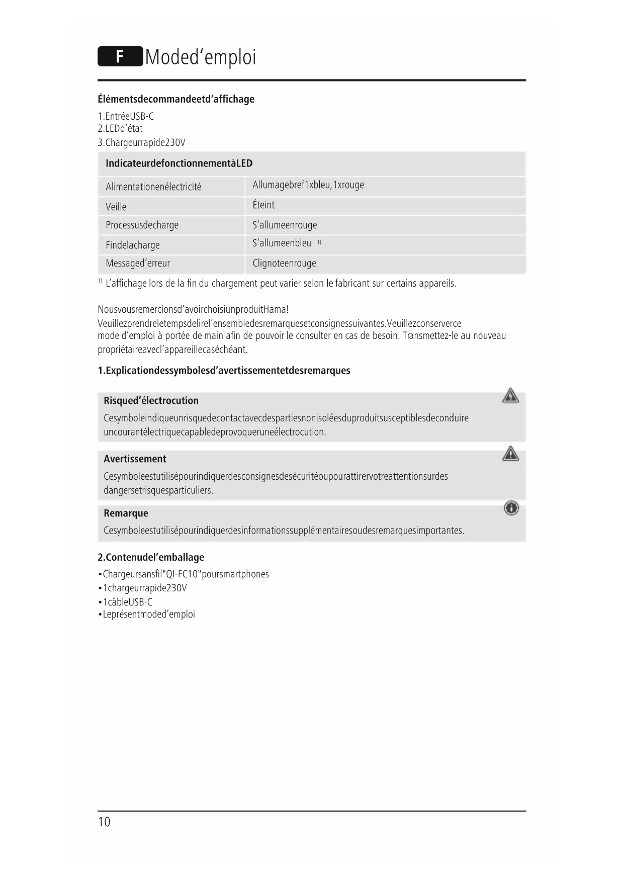 QIFC10 - Chargeur téléphone portable HAMA - Notice d'utilisation et mode d'emploi gratuit