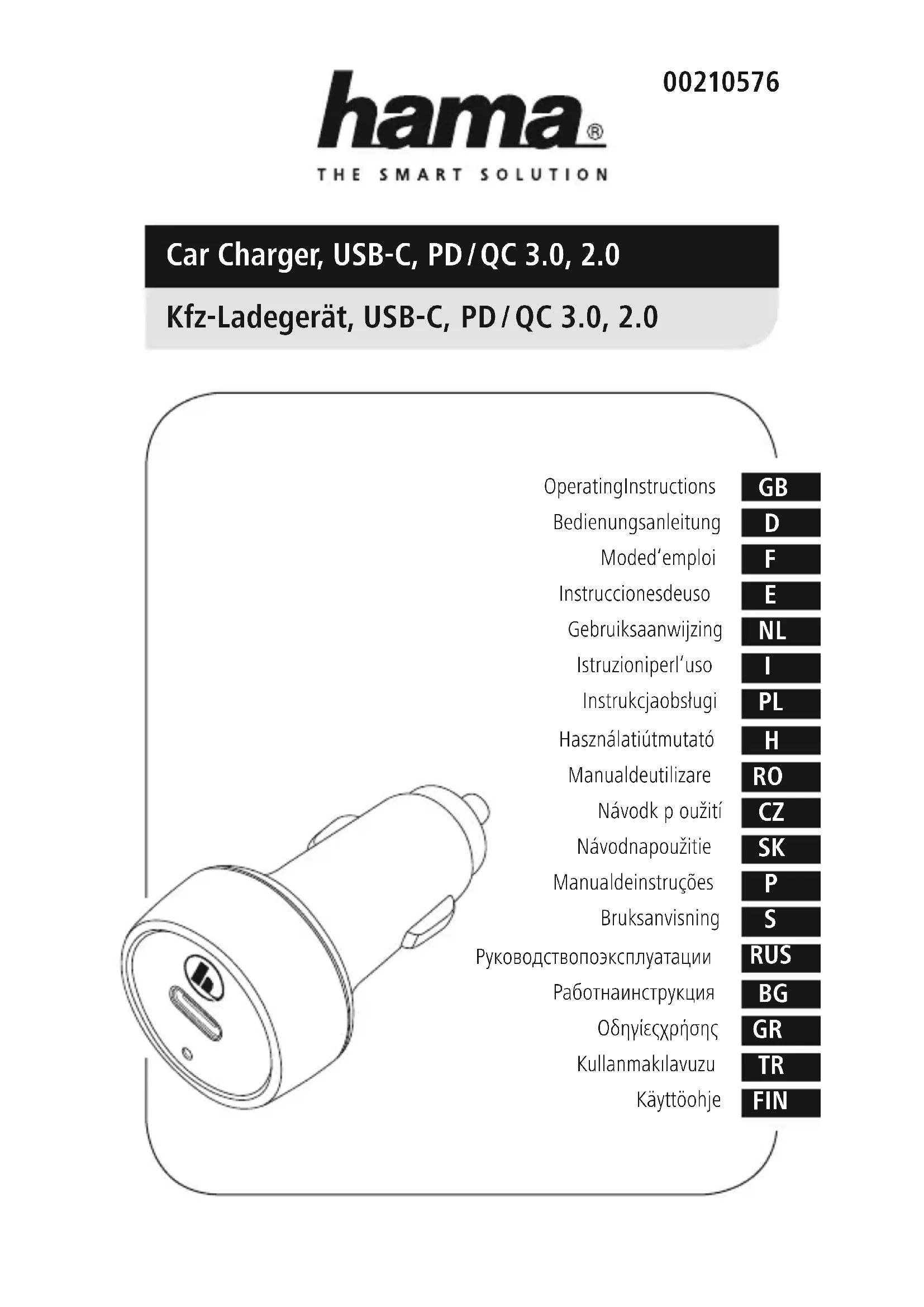 00210576 - Chargeur allume-cigare HAMA - Notice d'utilisation et mode d'emploi gratuit