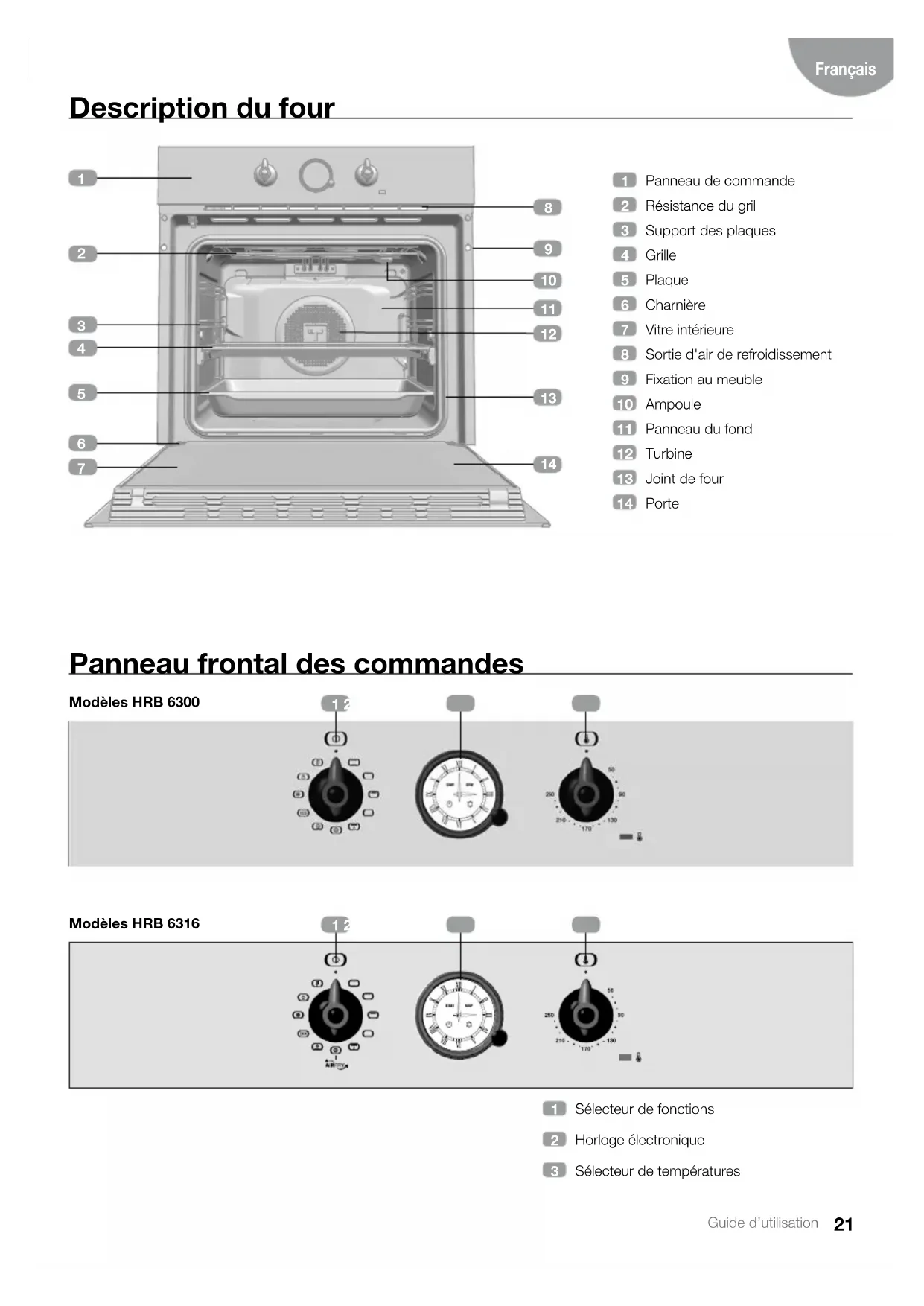 Modèle HRB 6300 Modèle HRB 631623 Guide d’utilisation Français Description de l’horloge/minuterie électronique Utilisation de votre four