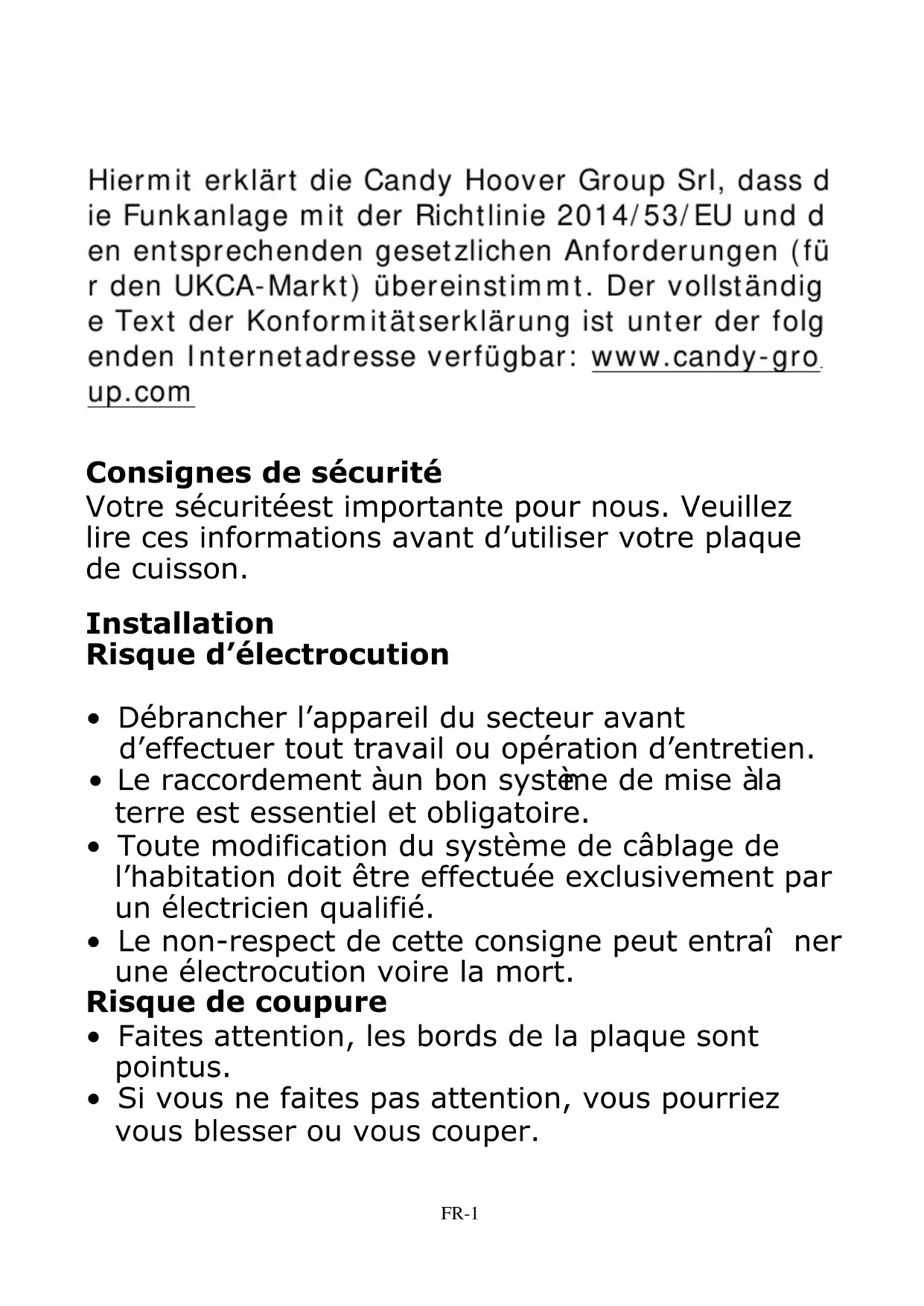 - Le non-respect de cette consigne peut entraîner une électrocution voire la mort.FR-3