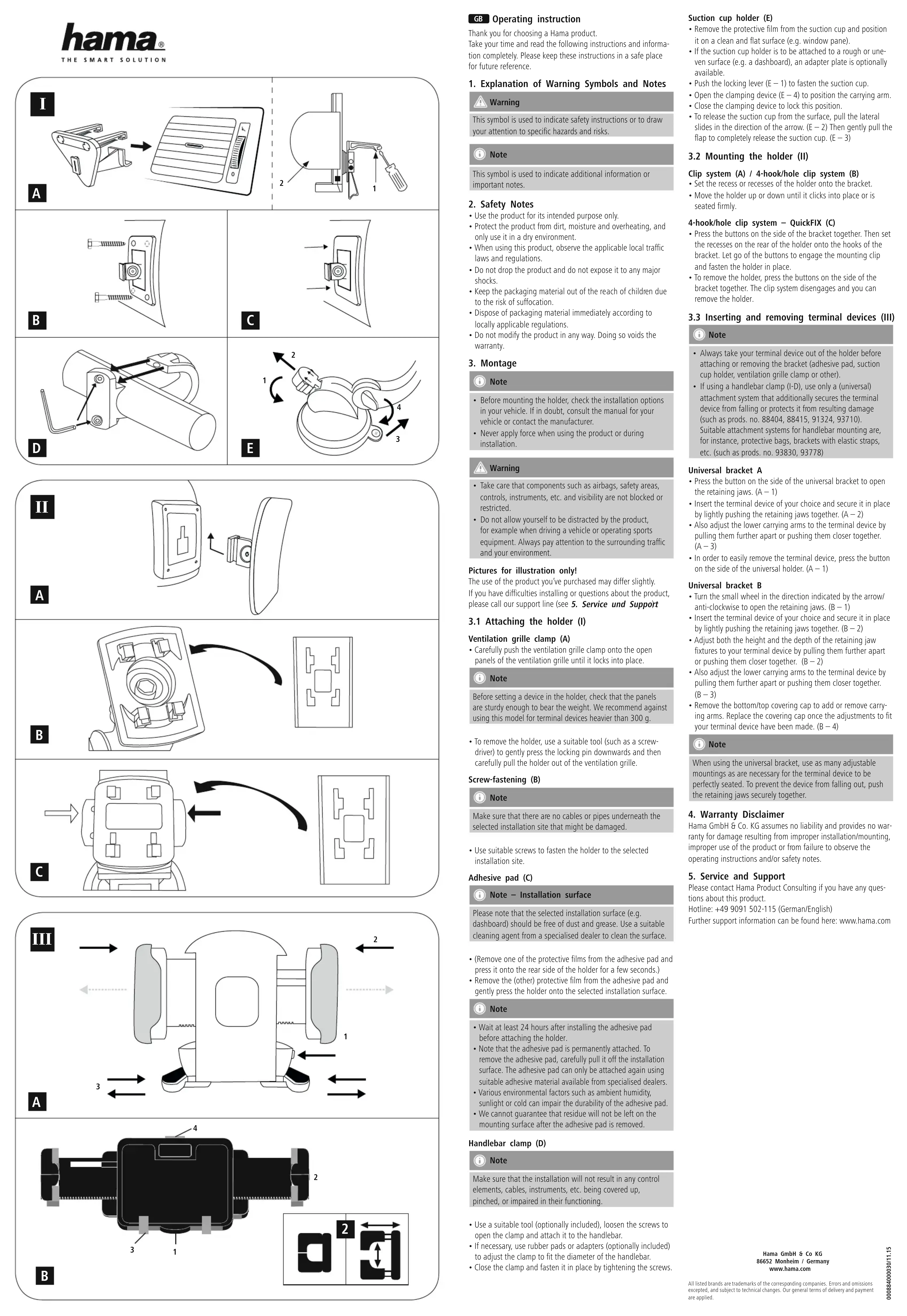 - Retirez en tous les cas votre appareil hors du système de xation avant d’installer ce dernier dans le support (coussinet adhésif, support à ventouse, pince pour grille d’aération, etc...) ou de le retirer.