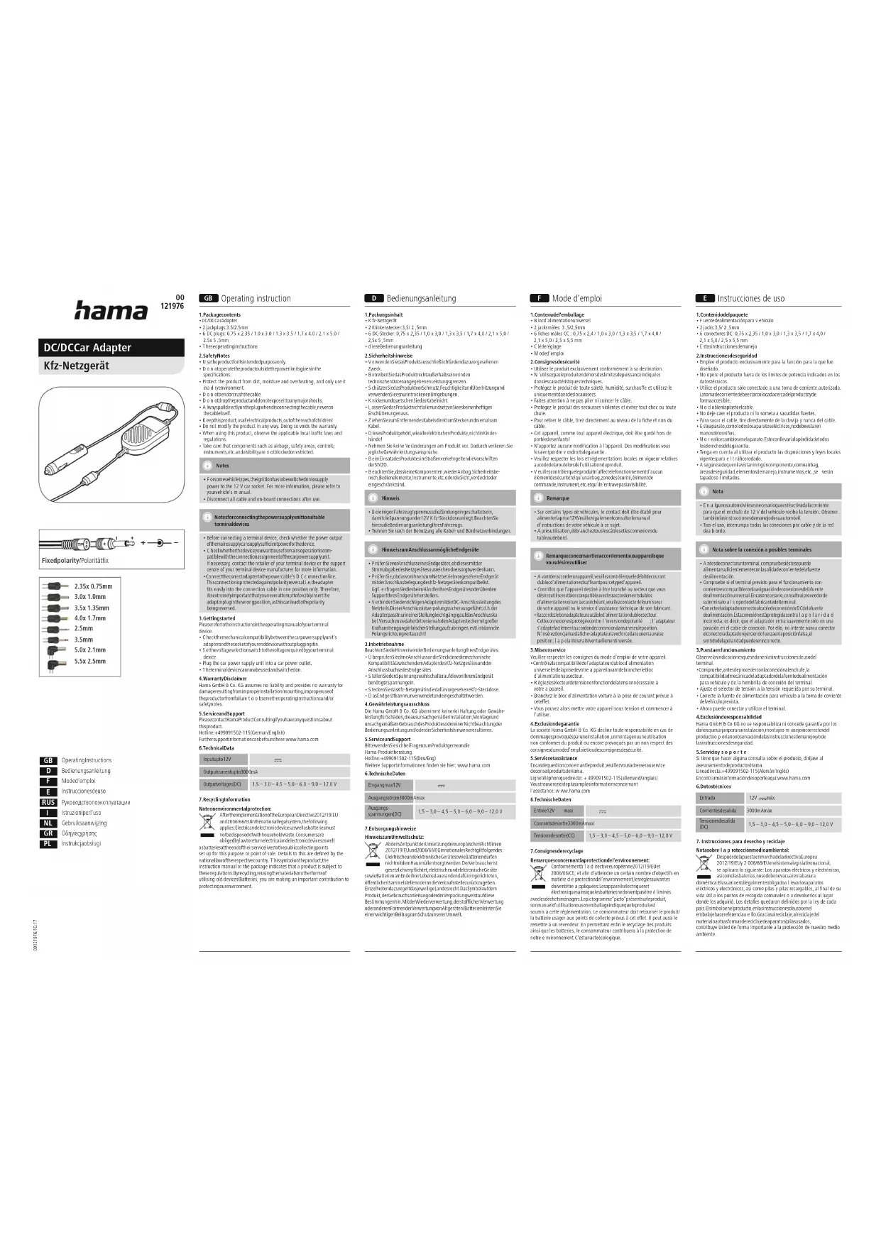 Retrouvez gratuitement la notice de l'appareil 00121976 HAMA au format PDF.