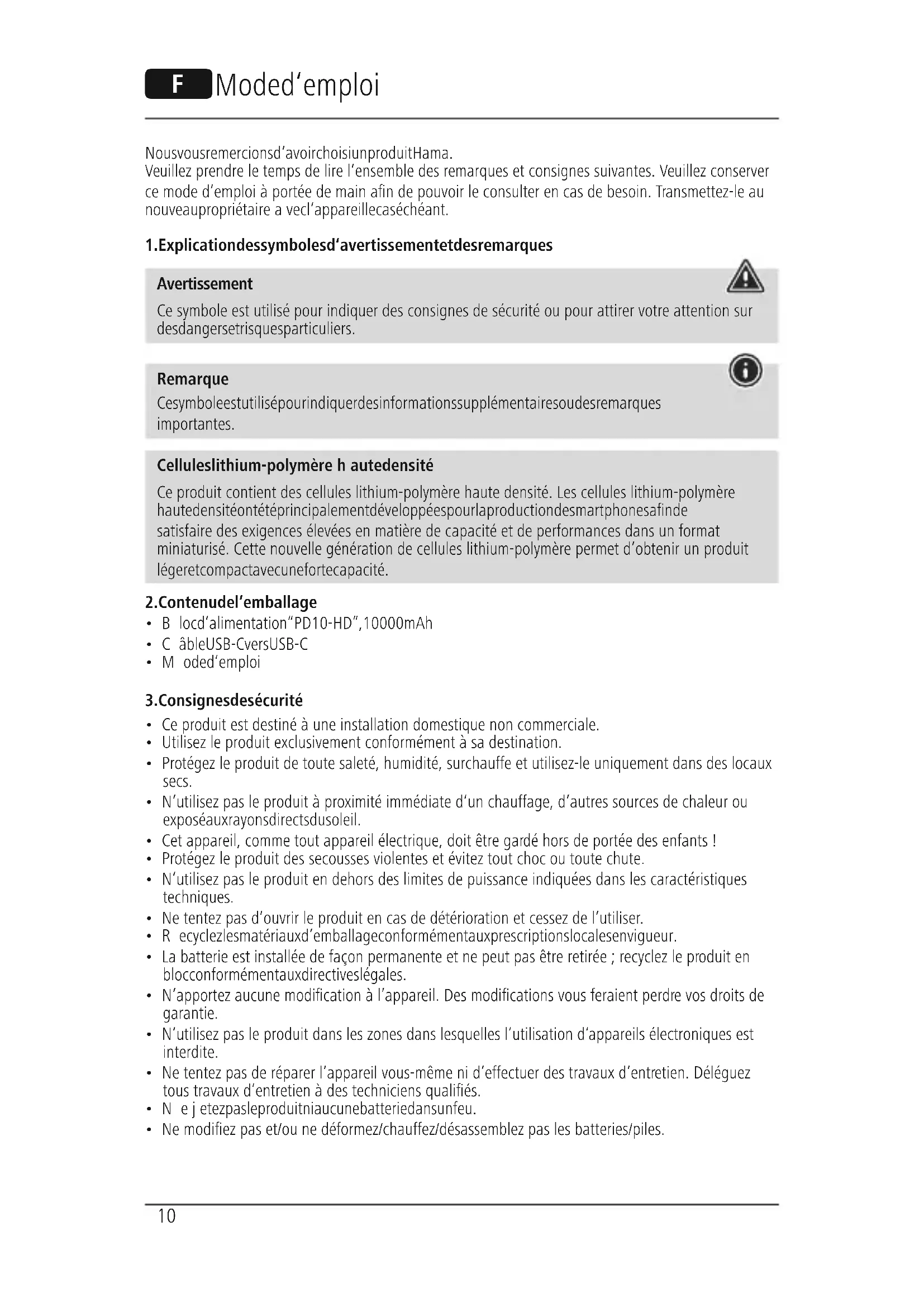 73210588 - Batterie portable HAMA - Notice d'utilisation et mode d'emploi gratuit