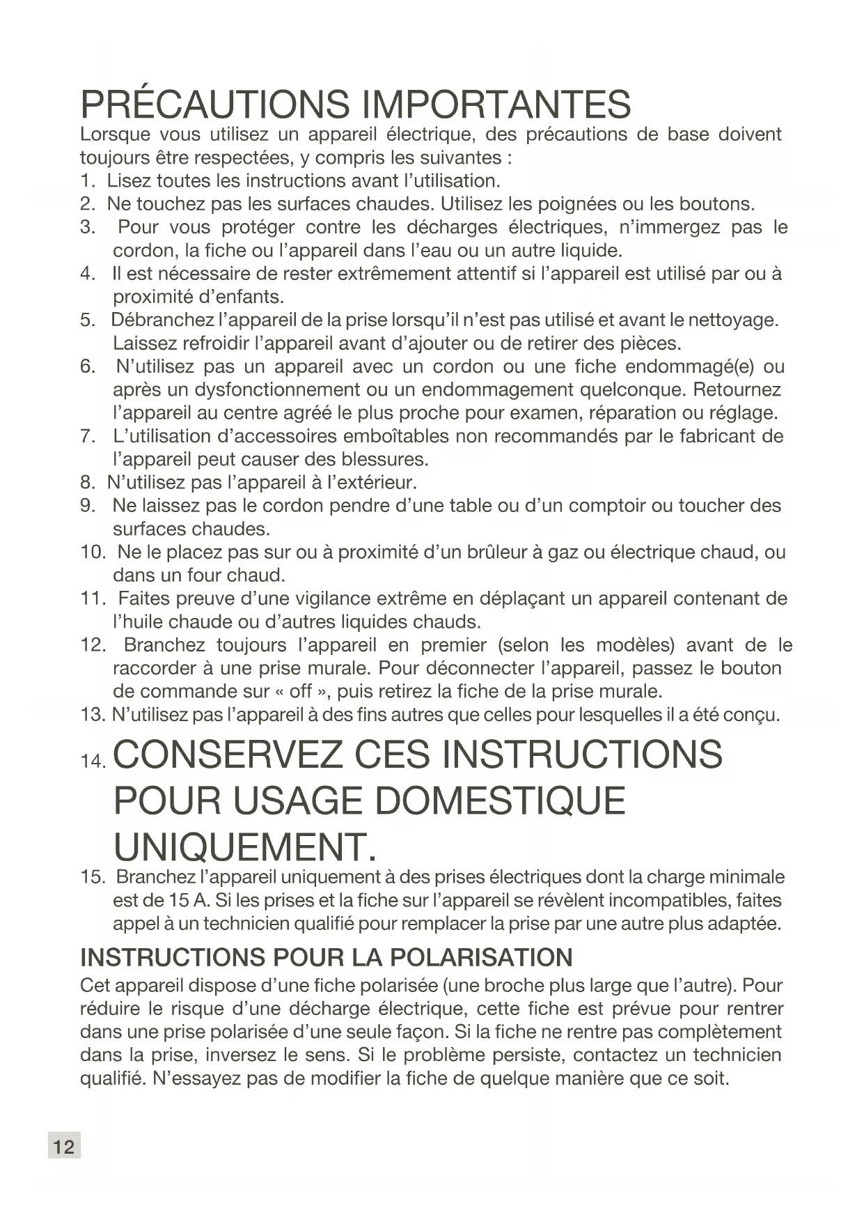 13. N’utilisez pas l’appareil à des ns autres que celles pour lesquelles il a été conçu.