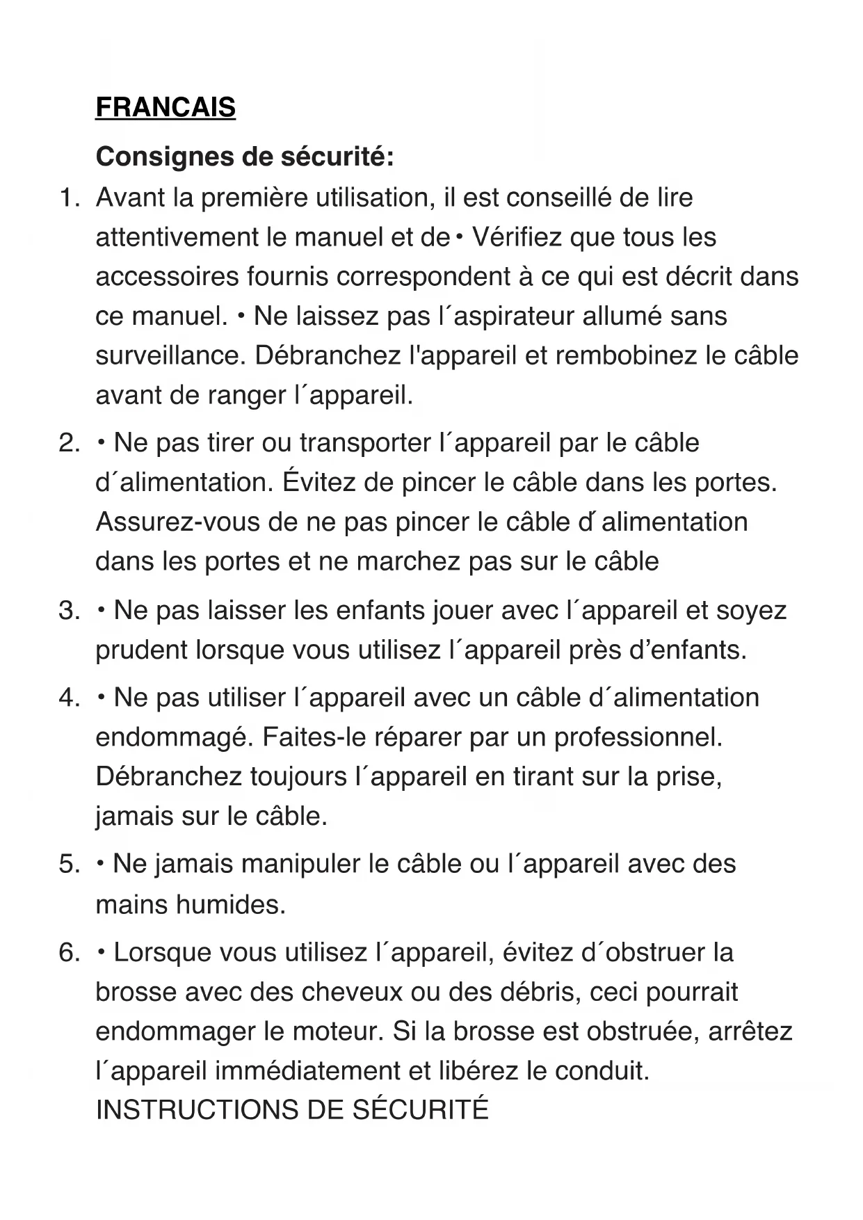 12. • Ne jamais aspirer d´eau ou tout autre liquide.