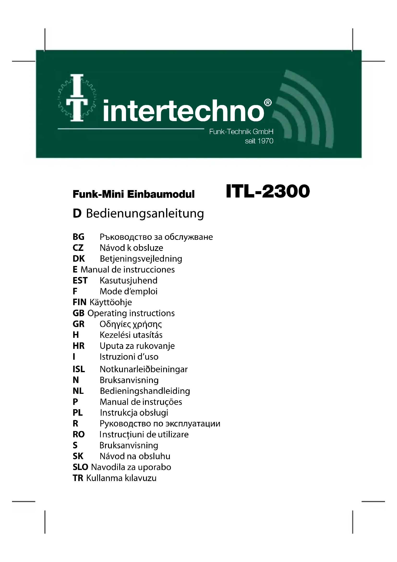 Retrouvez gratuitement la notice de l'appareil ITL2300 Intertechno au format PDF.