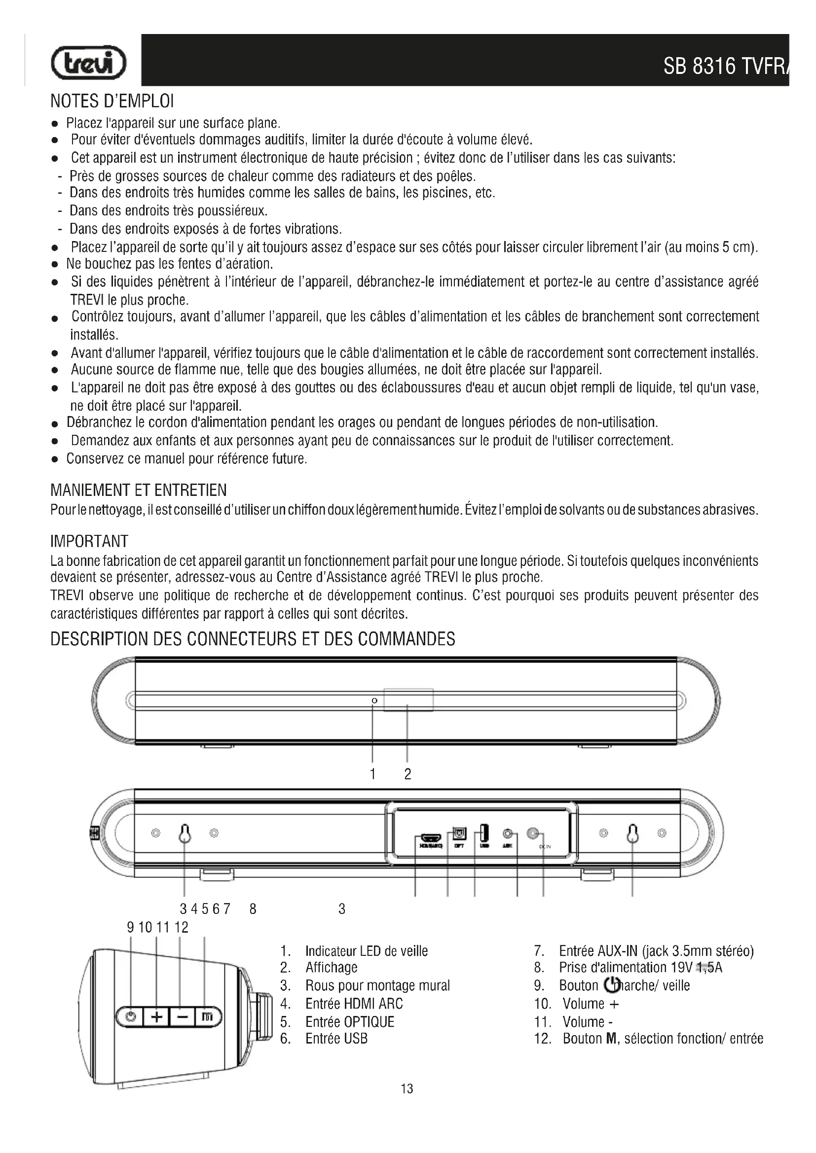 SB 8316 TV - Barre de son Trevi - Notice d'utilisation et mode d'emploi gratuit