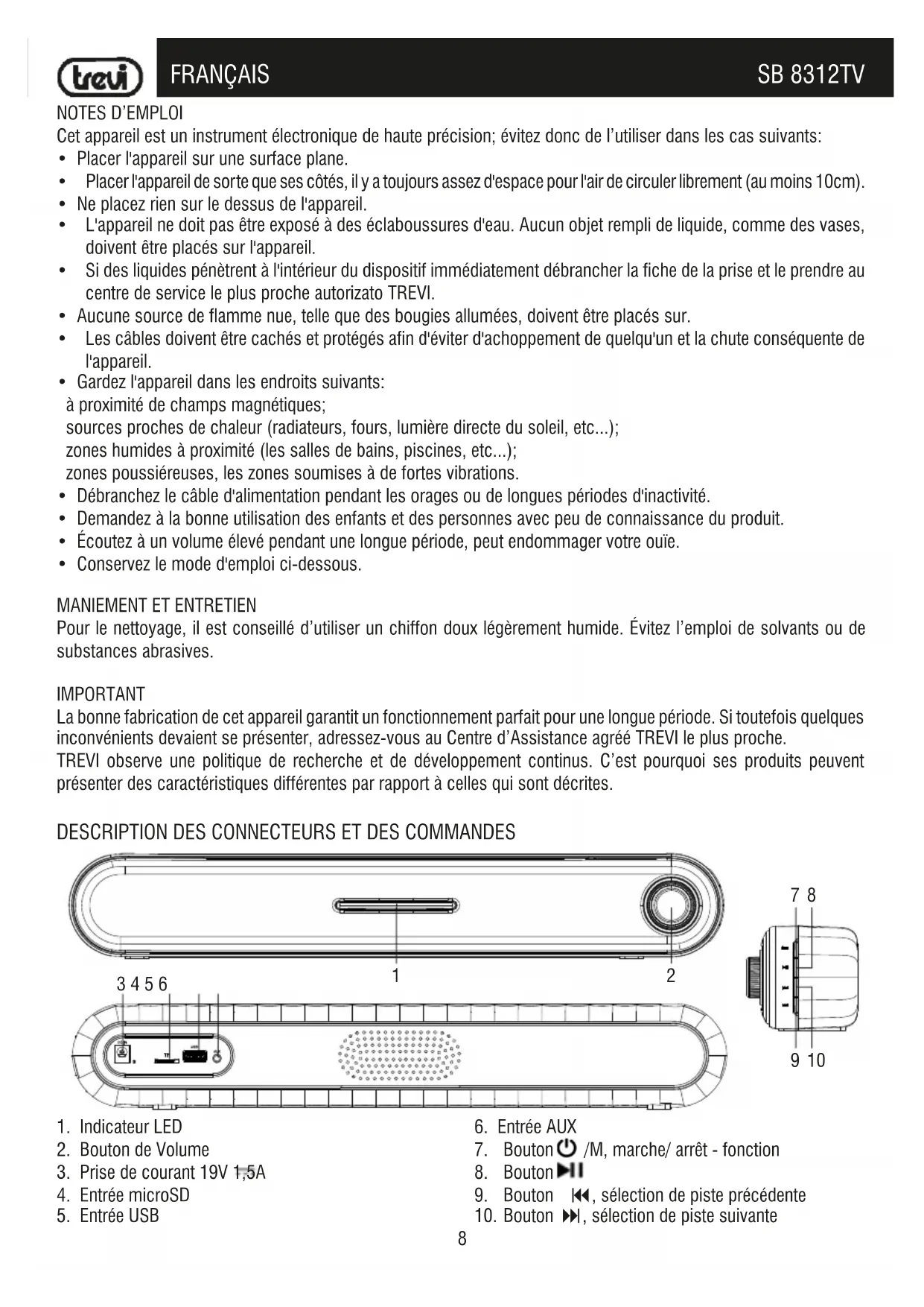 Retrouvez gratuitement la notice de l'appareil SB 8312 TV Trevi au format PDF.