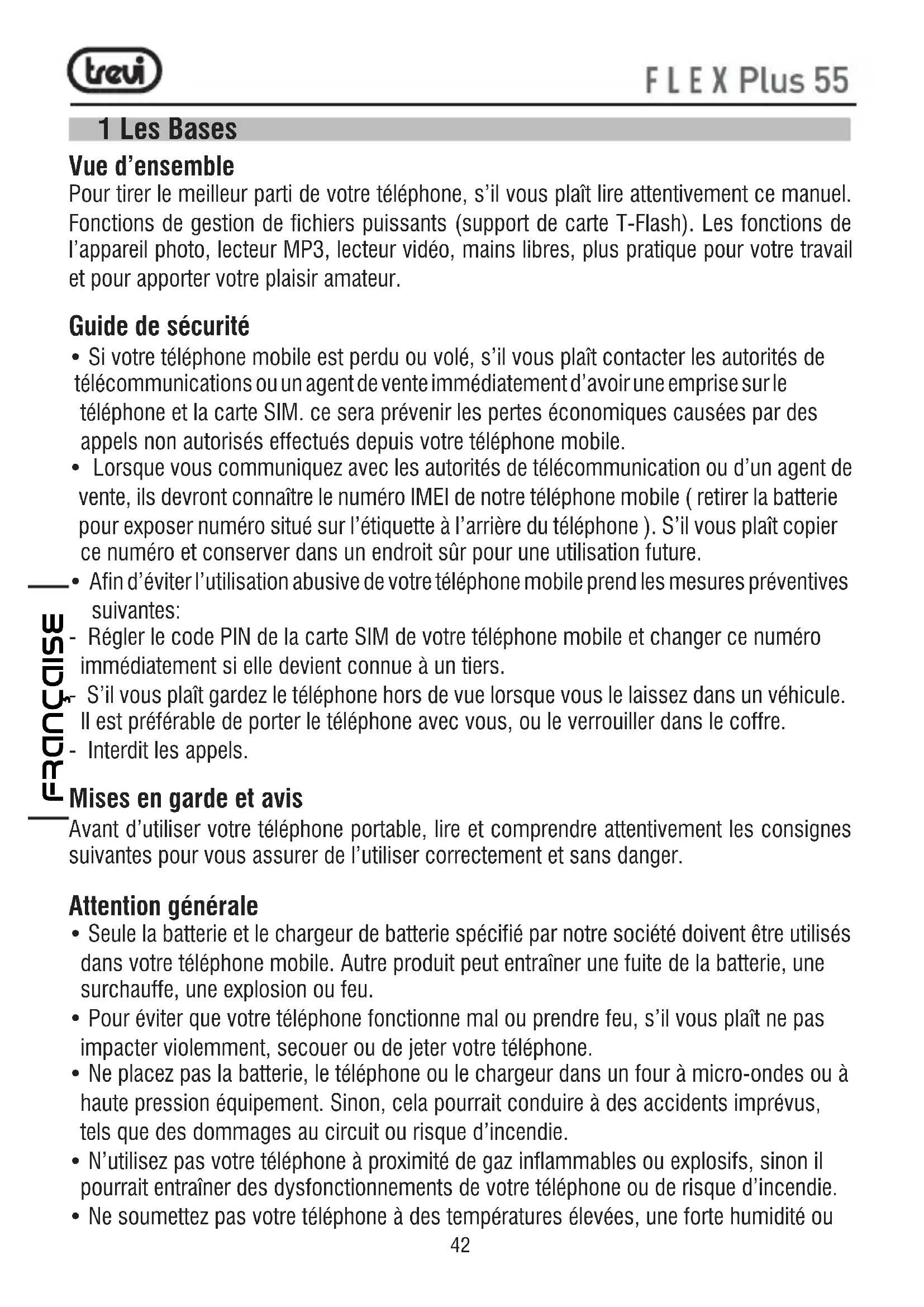 MODE D'EMPLOI Flex Plus 55 Trevi
