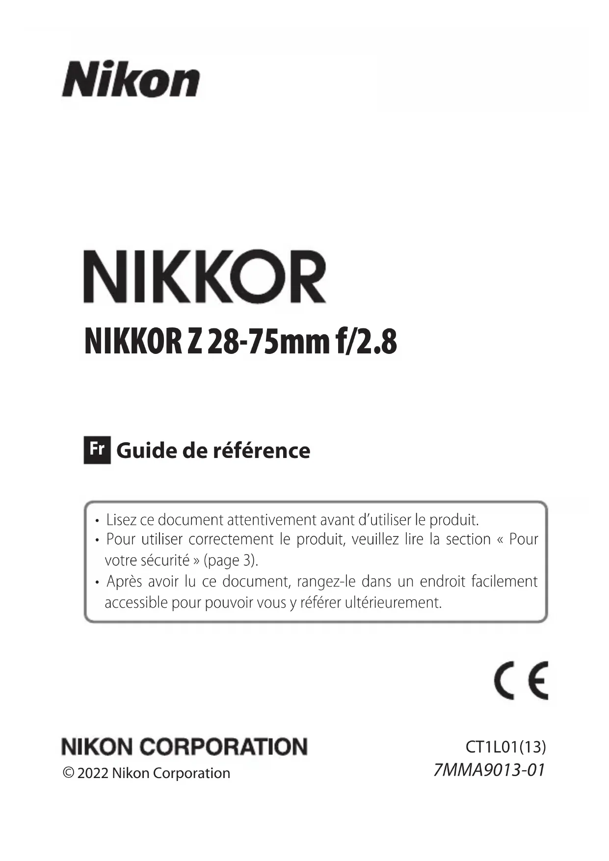 MODE D'EMPLOI NIKKOR Z 2875mm f2.8 NIKON