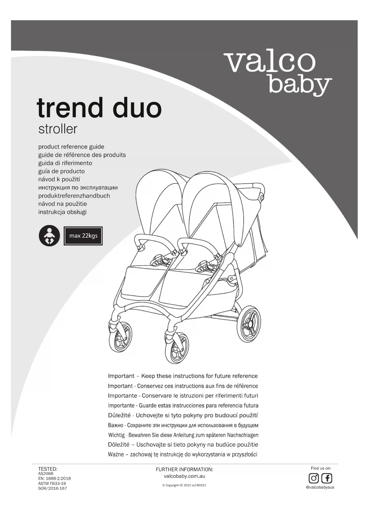 Trend Duo - Poussette Valco Baby - Notice d'utilisation et mode d'emploi gratuit
