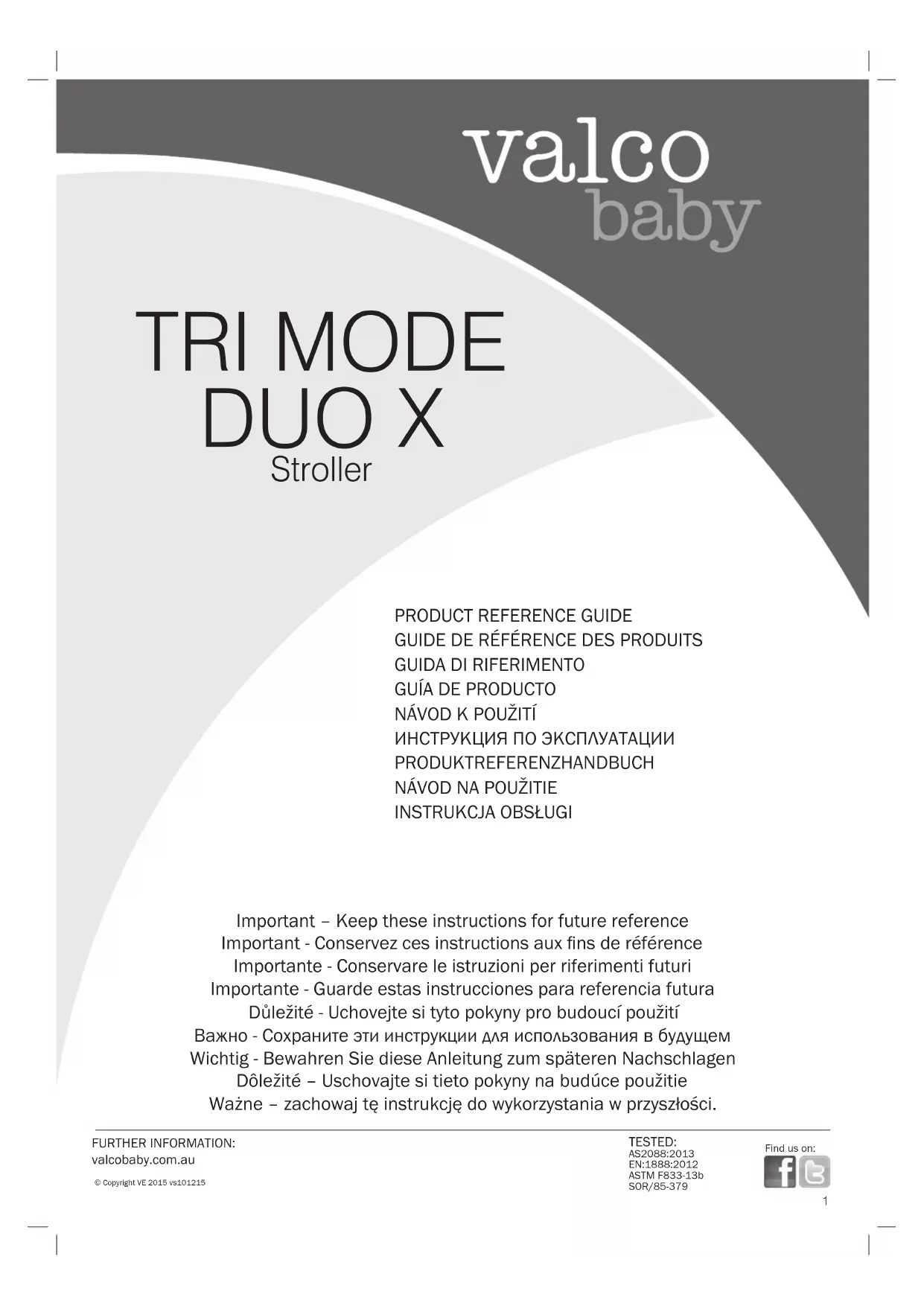 Retrouvez gratuitement la notice de l'appareil Tri Mode Duo X Valco Baby au format PDF.