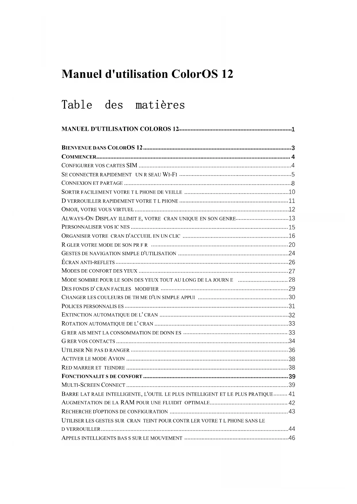 Manuel d'utilisation ColorOS 12 Table des matières