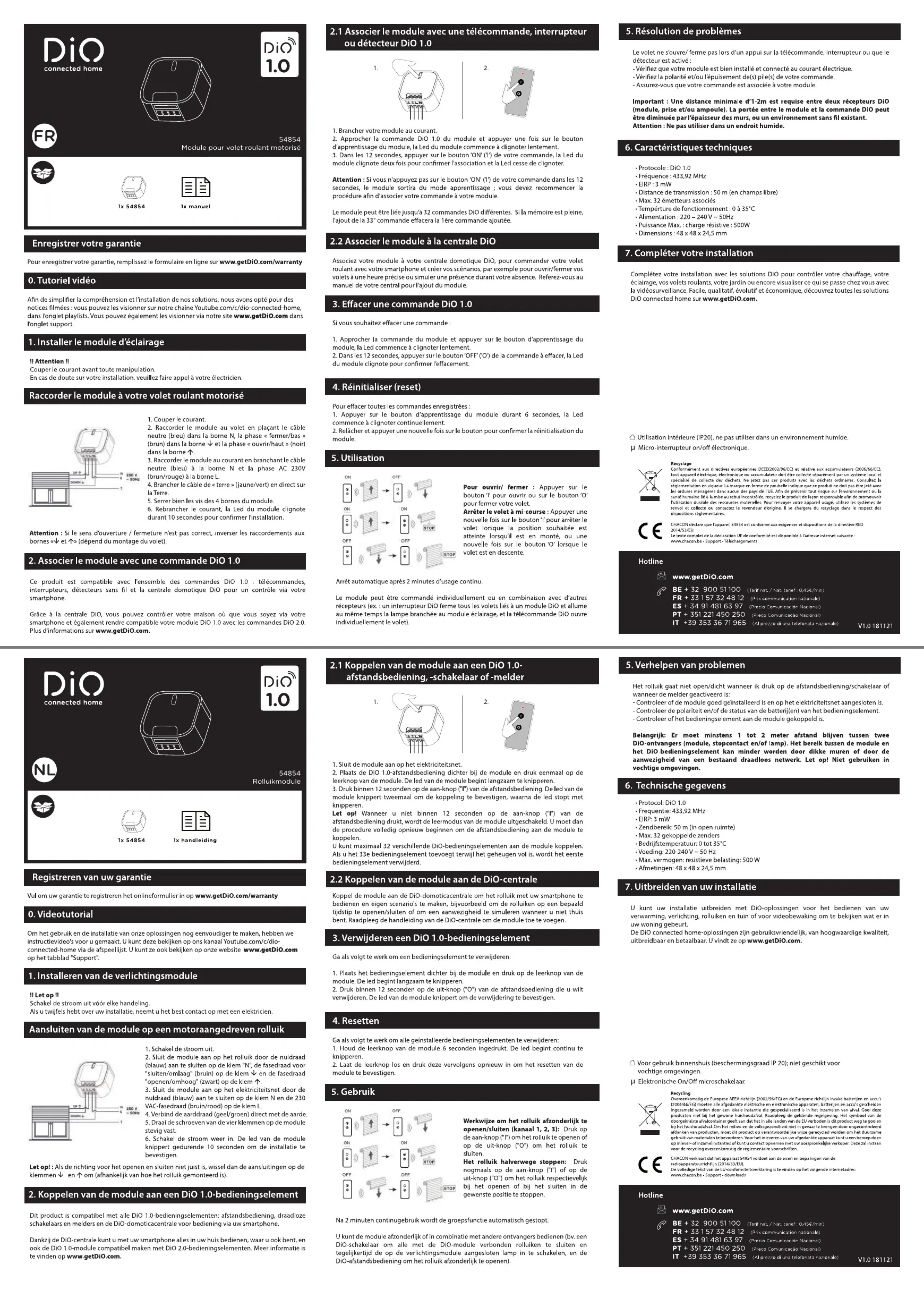 54854 - Module pour volet roulant motorisé DIO - Notice d'utilisation et mode d'emploi gratuit