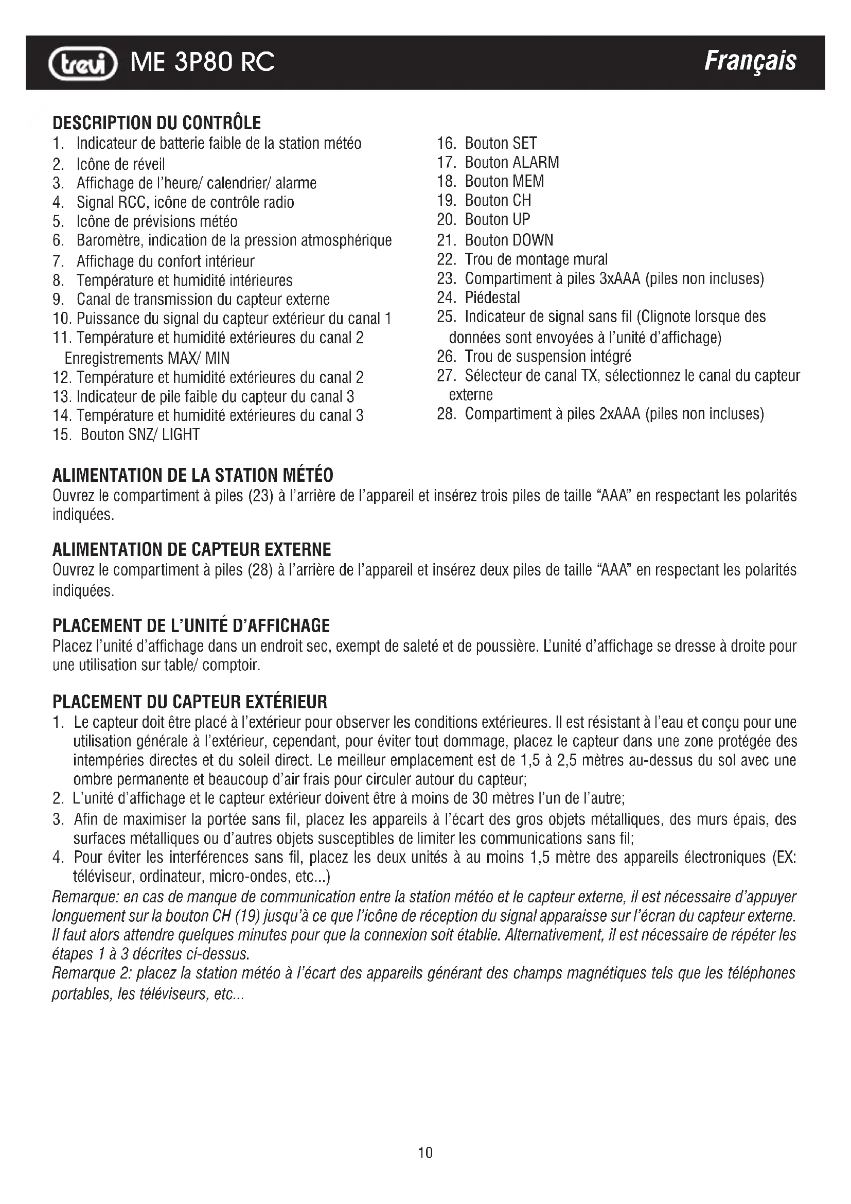 ME 3P80 RC - Station Météo Trevi - Notice d'utilisation et mode d'emploi gratuit