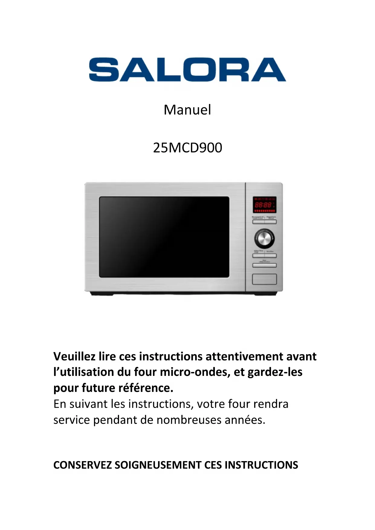 25MCD900 - Four à micro-ondes SALORA - Notice d'utilisation et mode d'emploi gratuit