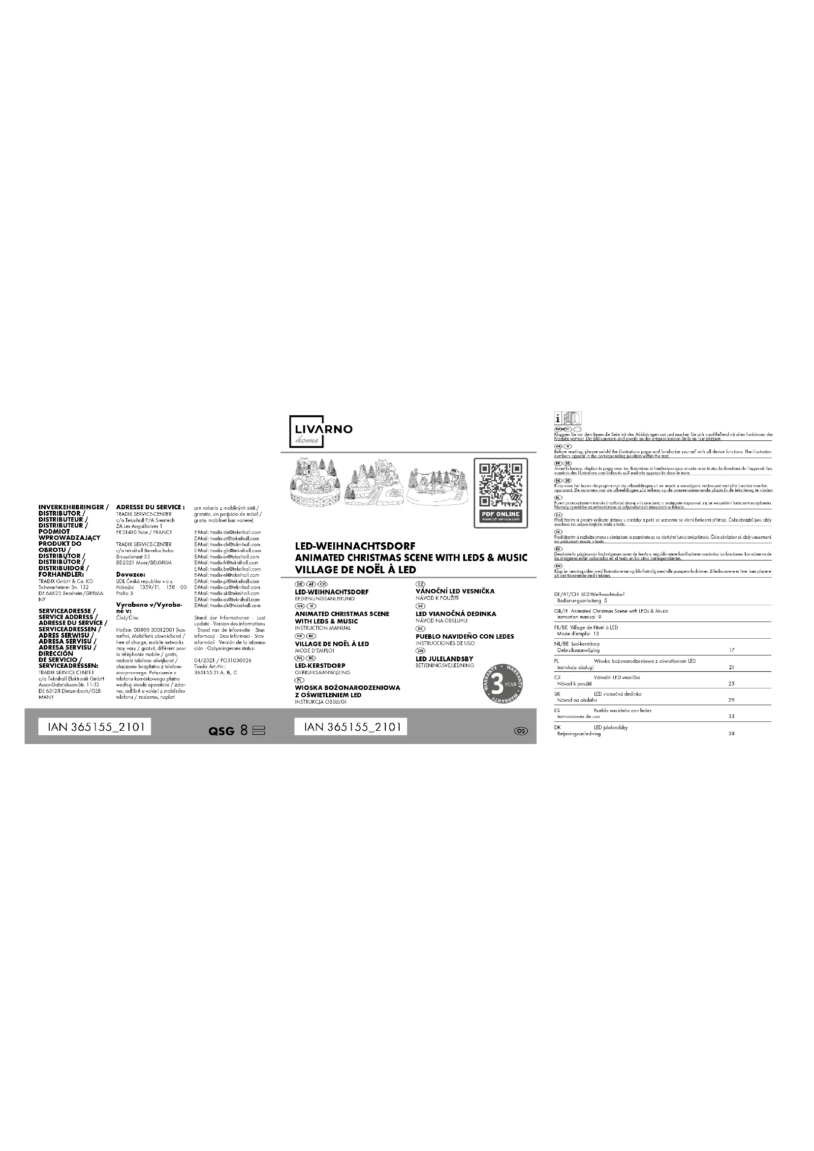 1 x notice d’utilisation Caractéristiques techniques Modèle : Village de Noël à LED IAN : 365155_2101 Num. d’art. Tradix : 365155-21-A, -B, -C - Ampoule : 365155-21-A