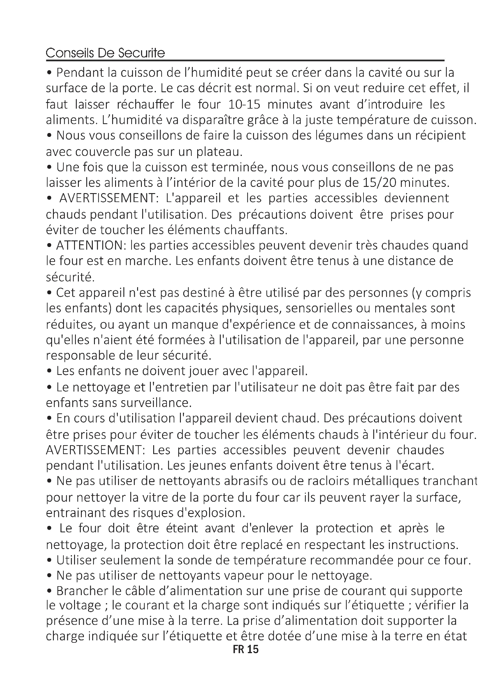 - ATTENTION: les parties accessibles peuvent devenir très chaudes quand le four est en marche. Les enfants doivent être tenus à une distance de sécurité.
