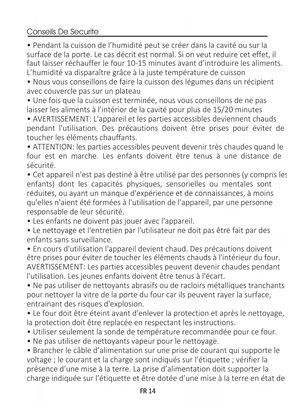 - Utiliser seulement la sonde de température recommandée pour ce four.