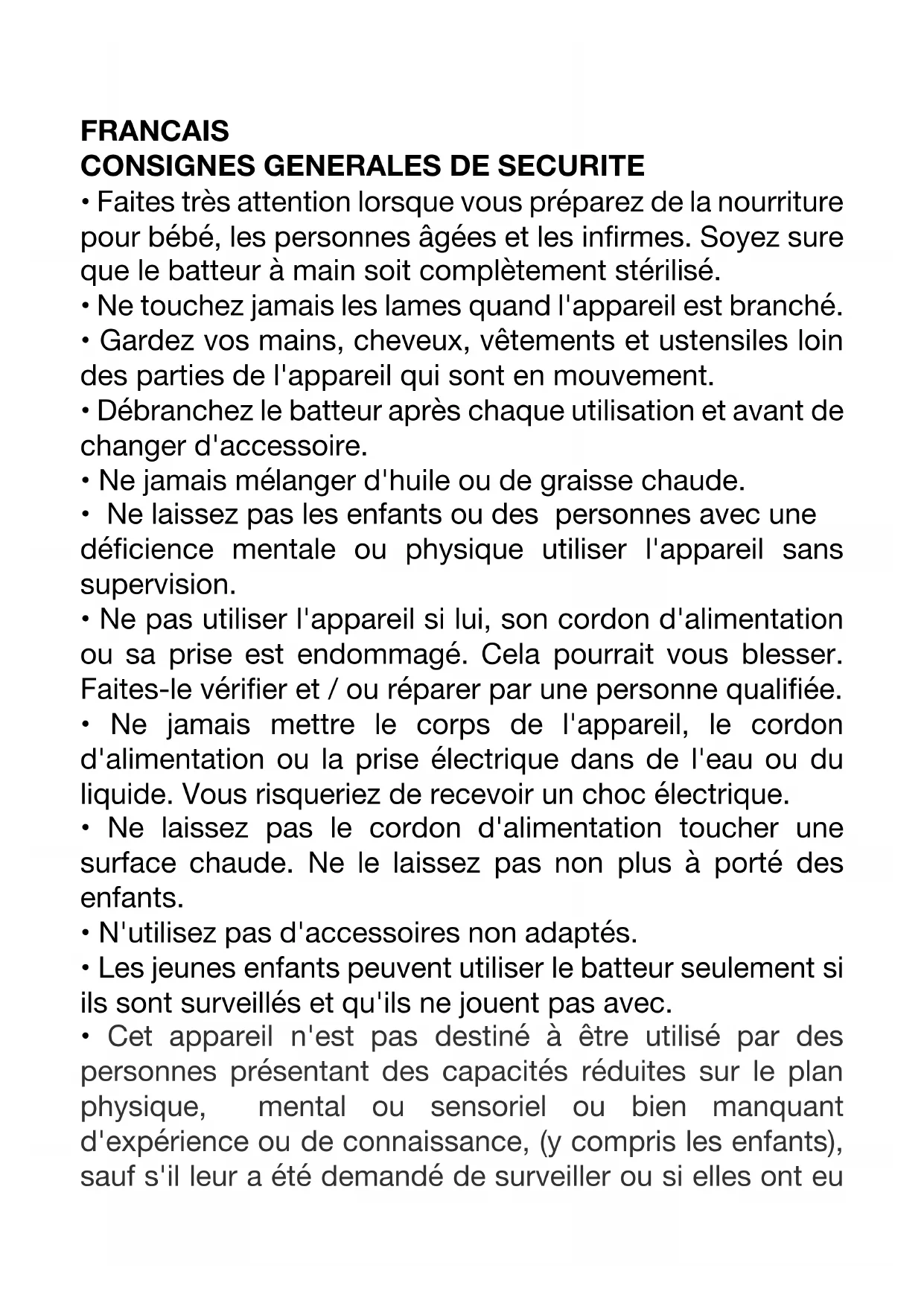 - Ce batteur à main est exclusivement réservé à un usage domestique.