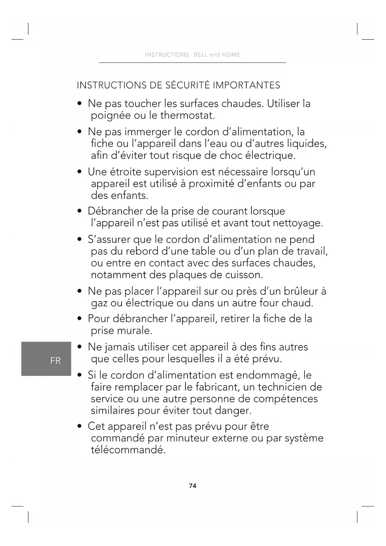 - Ne pas toucher les surfaces chaudes. Utiliser la poignée ou le thermostat.