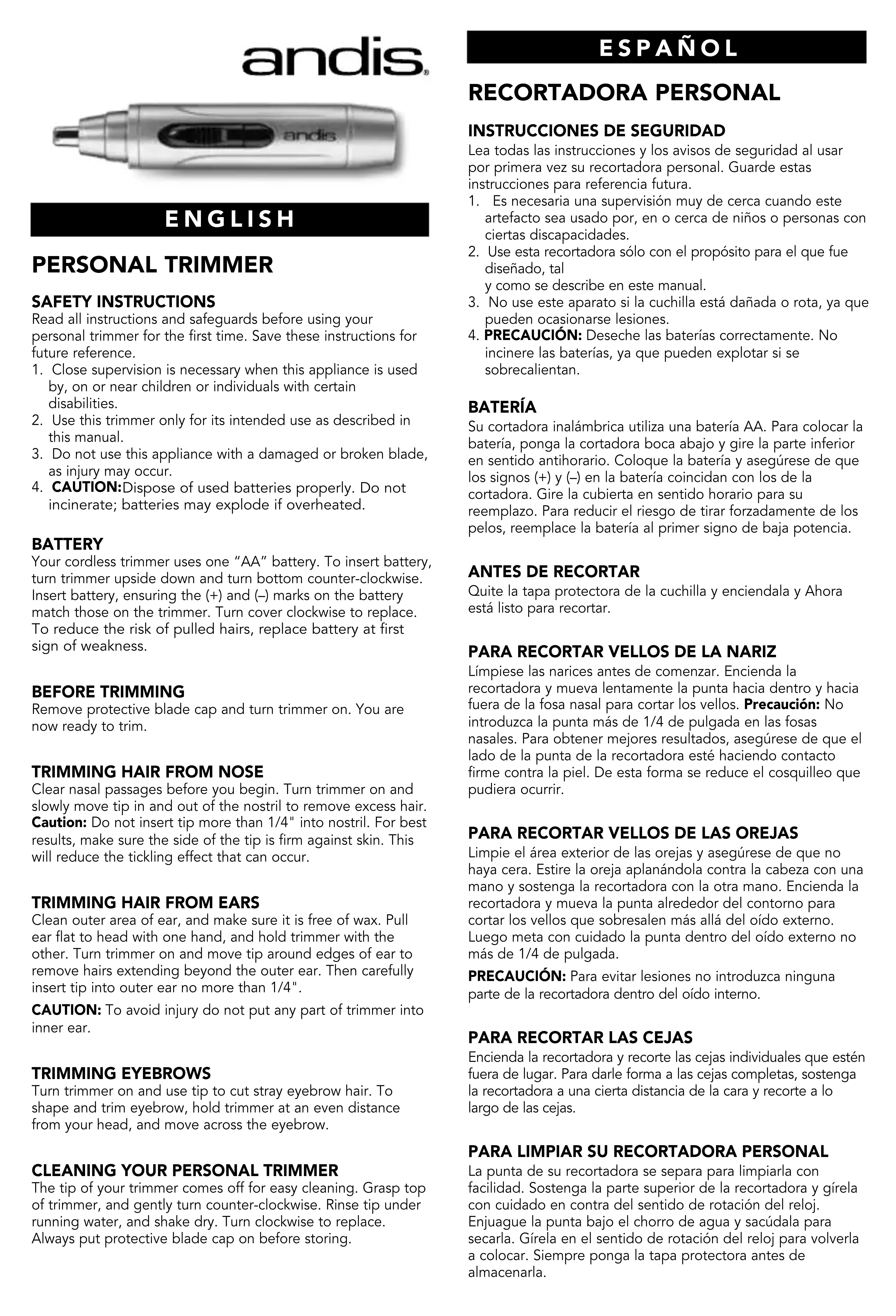 FastTrim NT2 - Tondeuse à barbe Andis - Notice d'utilisation et mode d'emploi gratuit