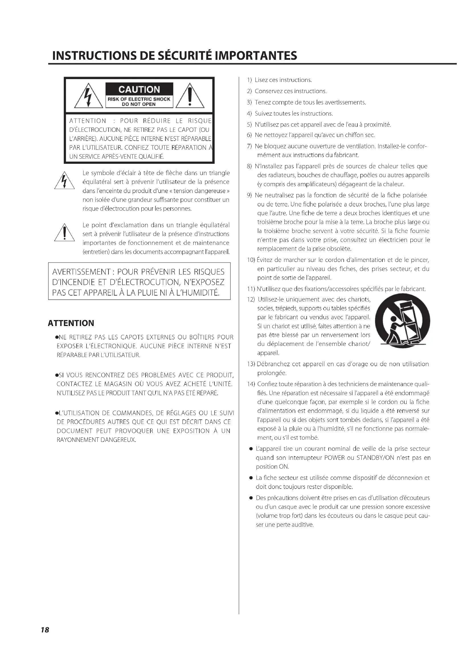 INSTRUCTIONS DE SÉCURITÉ IMPORTANTES .......................18
