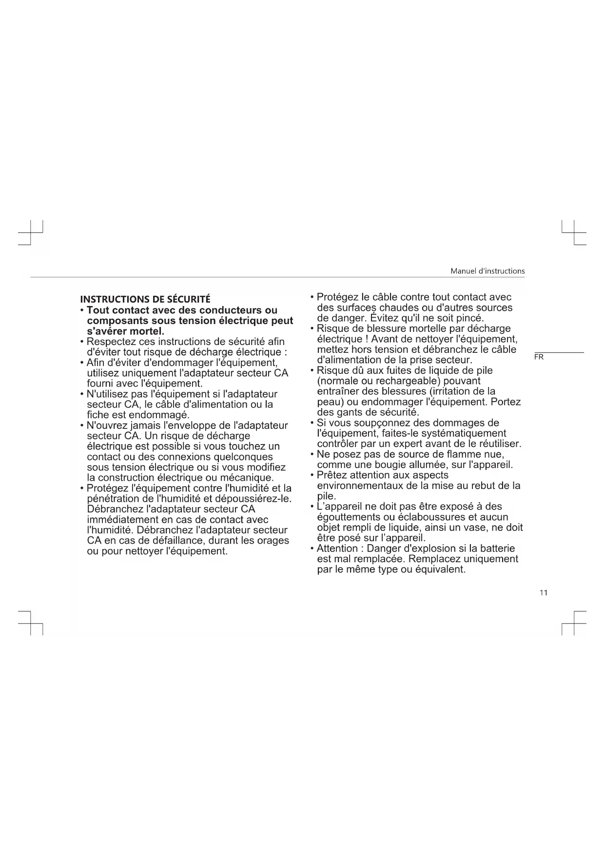 - Attention : Danger d'explosion si la batterie est mal remplacée. Remplacez uniquement par le même type ou équivalent. FRManuel d'instructions