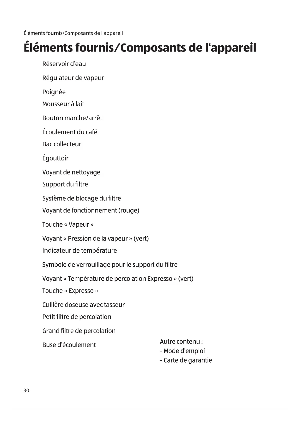 Éléments fournis/Composants de l‘appareil