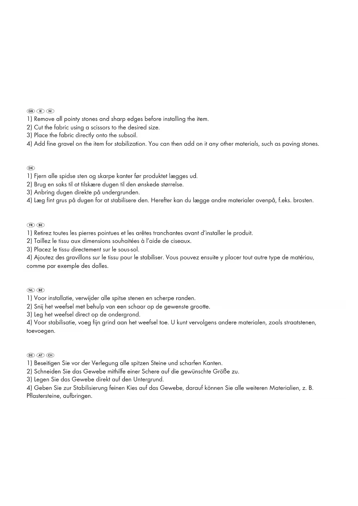 1) Retirez toutes les pierres pointues et les arêtes tranchantes avant d’installer le produit.