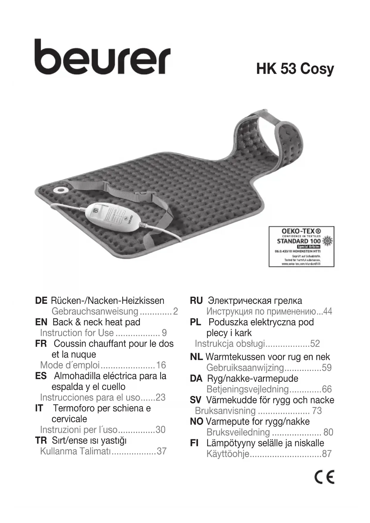 HK 53 Cosy - Couverture/coussin chauffant BEURER - Notice d'utilisation et mode d'emploi gratuit