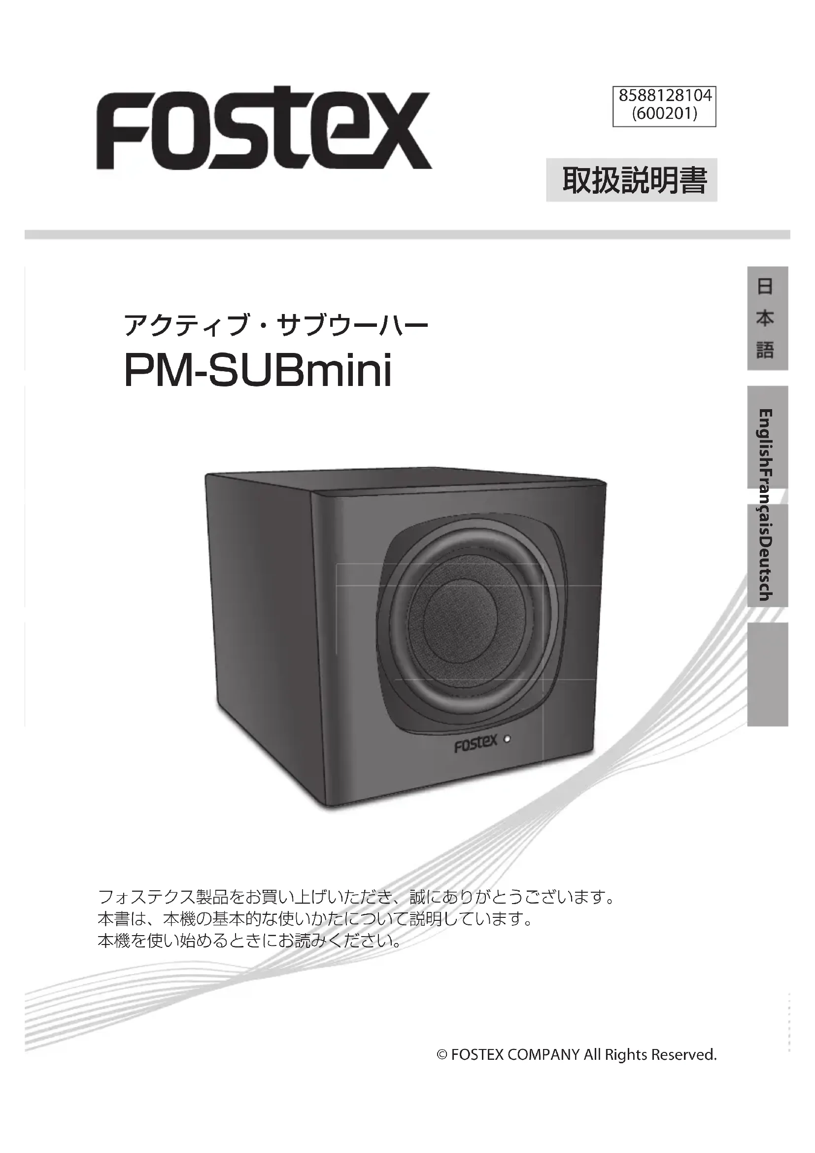 PMSUBmini2 - Caisson de basses FOSTEX - Notice d'utilisation et mode d'emploi gratuit